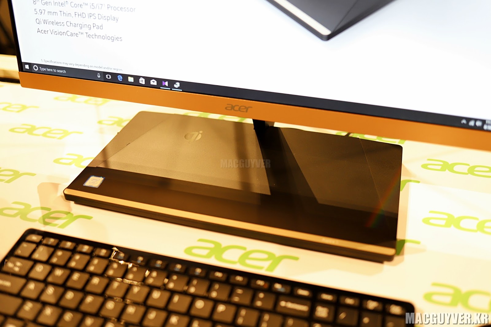 아스파이어 S24는 아이맥과 같은 올인원 PC인데요. 진열된 제품을 처음 봤을 때는 그냥 모니터인 줄 알았습니다. 올인원 PC라 하기에는 굉장히 슬림하고 세련된 디자인을 품고 있었기 때문이죠. 베젤이 상당히 얇고 색감도 고급스럽더군요.