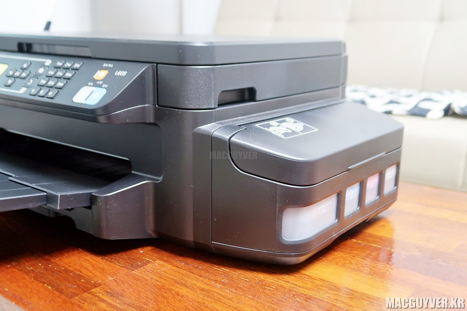 특히나 흑백을 140ml나 주입할 수 있는 초대형 잉크 공급 장치가 일체형처럼 부착되어 있어서 더욱 안정적이면서도 다량의 흑백 출력을 할 수 있는 제품이기도 했습니다.