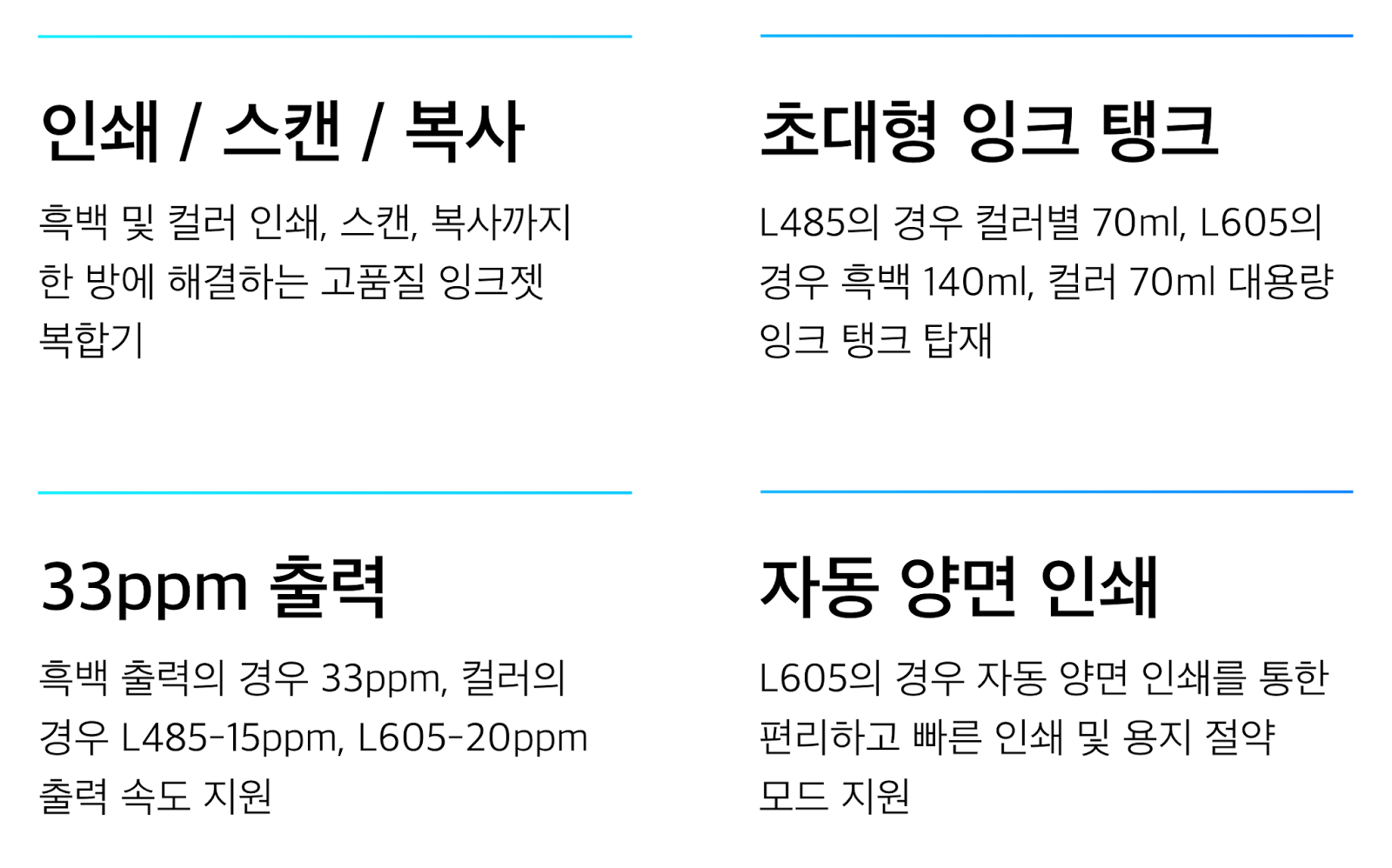 ✎ 기본적인 품질이나 출력 속도는 유지하면서도 비용까지 줄여주었던 엡손 정품 무한 잉크젯 복합기 L485 & L605