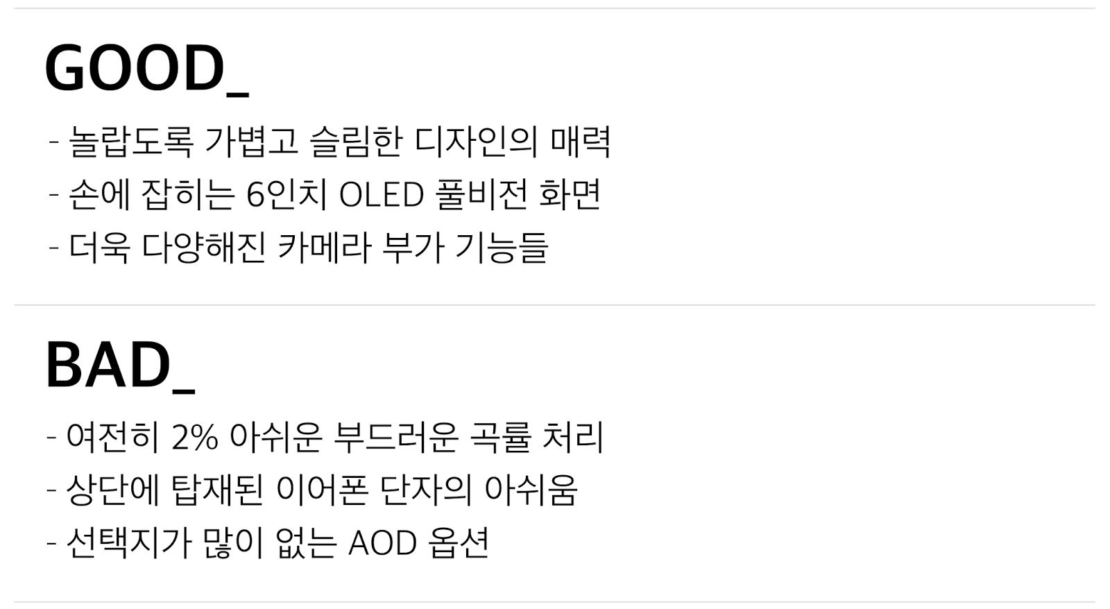 ✎ 줄어든 베젤과 상하좌우 대칭을 통한 고급스러움을 느낄 수 있었습니다.