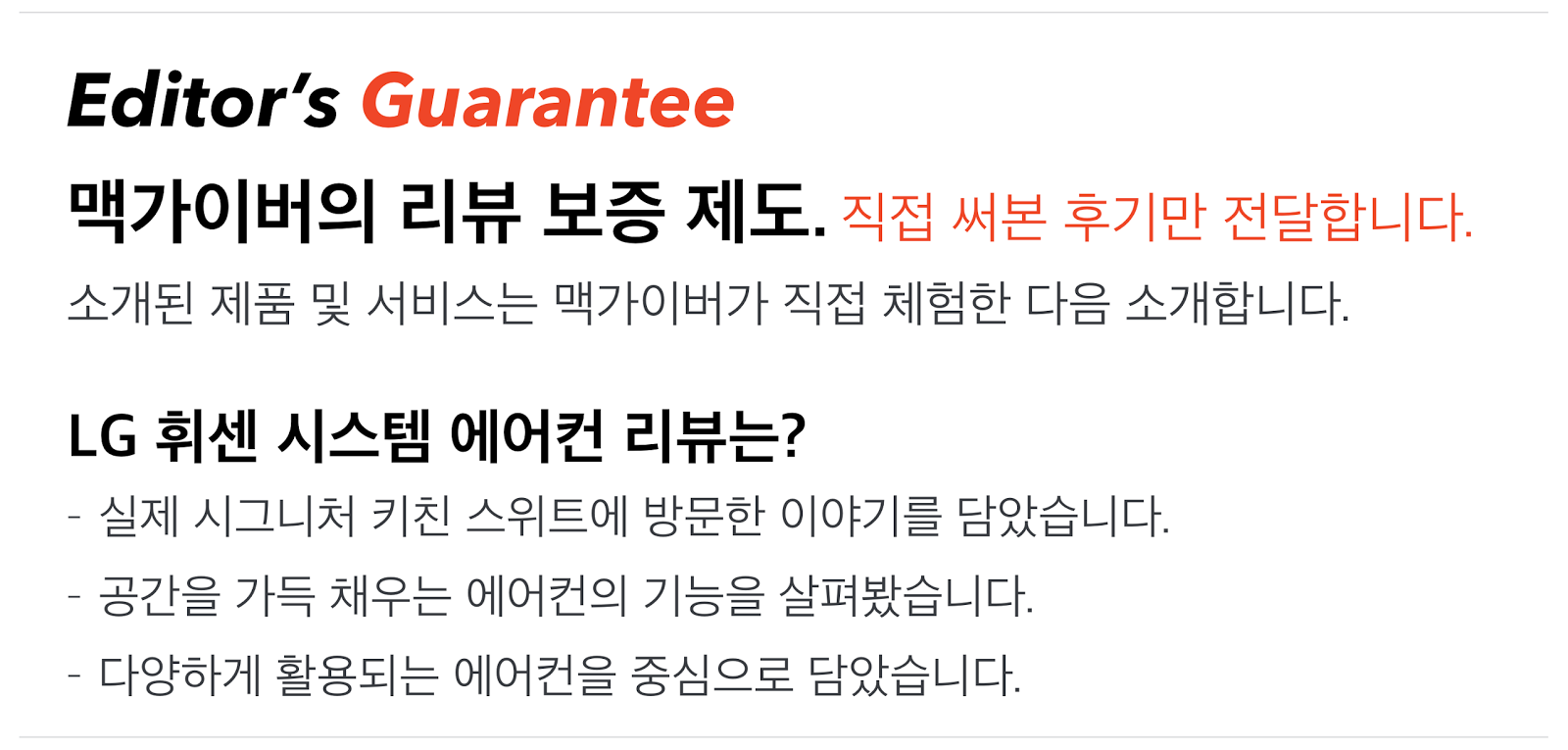 그렇다면, 이번 시그니처 키친 스위트에 함께 동행한 지인 B의 평가는 어떠했을까? LG 휘센 시스템 에어컨에 대한 소감과 공간에 대한 소감을 물어봤다.