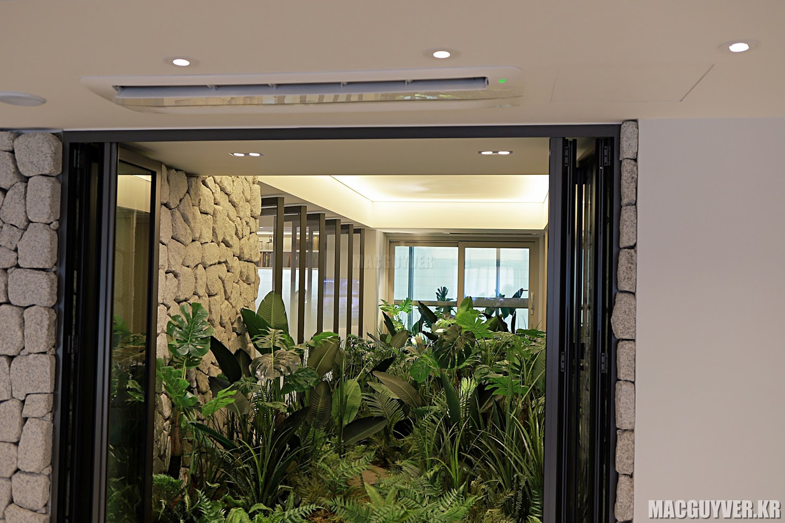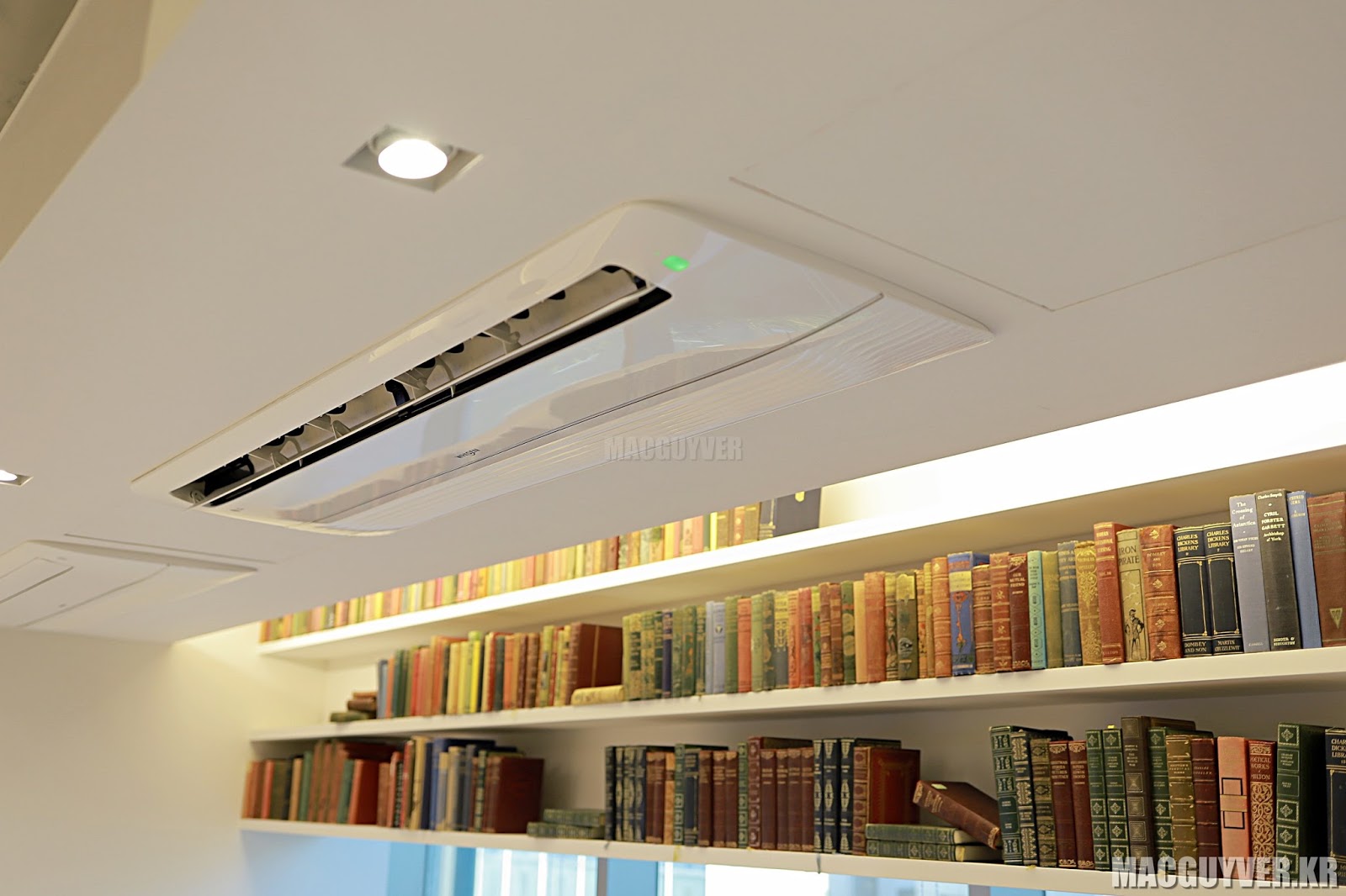그리고, 이렇게 넓은 공간을 무엇으로 채우고 있을까 하고 살펴본 결과 LG 휘센 시스템 에어컨이 곳곳에 있는 것을 확인할 수 있었는데, 디자인이 깔끔하고 세련되었을 뿐 아니라 리모컨을 통해서 직관적으로, 또는 인체 감지 센서를 통해서 간접적으로 조절할 수 있다는 점에서 편의성을 크게 느낄 수 있었다.