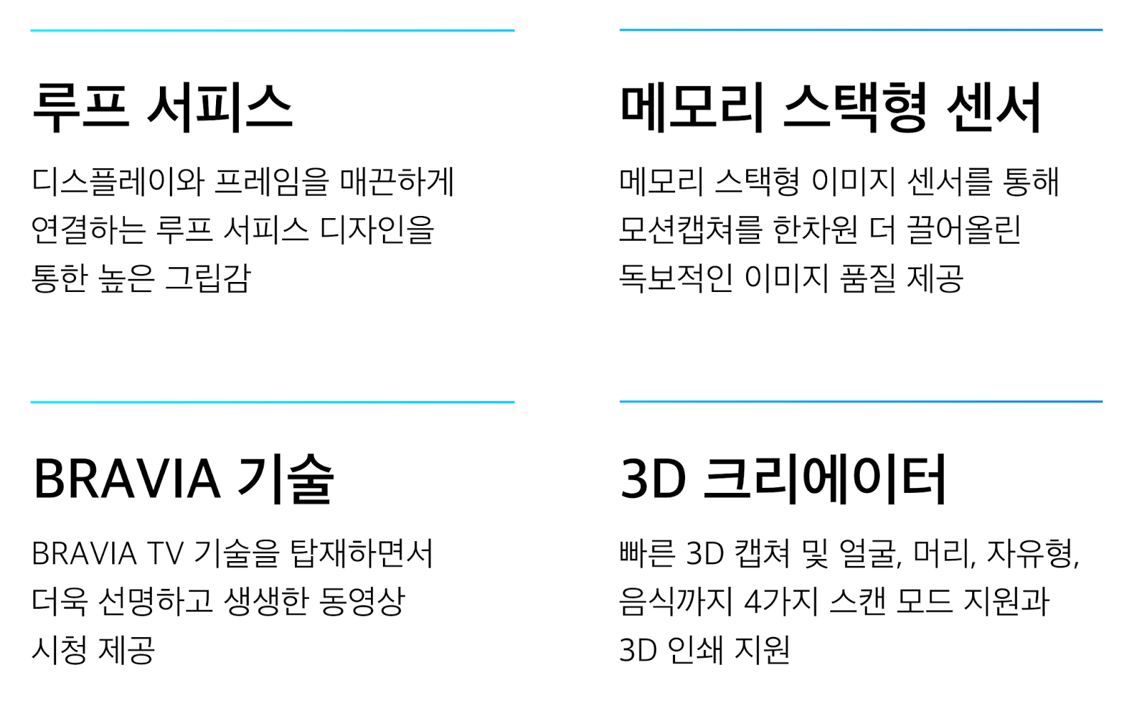 이외에도 소니 엑스페리아 XZ1에는 3D 크리에이터 기술이 탑재되어 있는데, 기존의 스마트폰에서는 볼 수 없었던 3D 스캔 기능으로 사물을 평면으로가 아닌, 입체적으로 담아준다는 점에서 완전히 다른 경험이 가능했다.