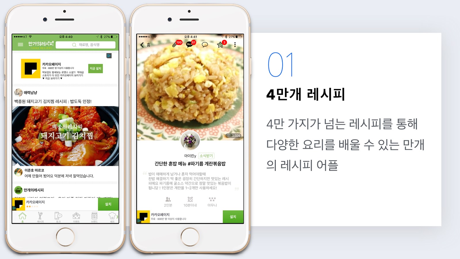 특히나 만개의 레시피는 요리 어플의 정석으로 불리는 만큼 무려 4만개가 넘는 레시피를 담고 있기 때문에, 그리고 다양한 후기와 소감 및 사진까지 활용해서 요리를 쉽게 배울 수 있기 때문에 요리와 관련해서는 필수 어플이라 부를 수 있다.