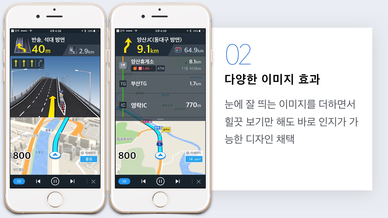 그렇기 때문에 더욱 안전하고 빠른 길로 안내하는 네비 어플은 필수적이다. 이를테면 아틀란3D가 있는데, 아틀란3D는 시인성이 뛰어나서 흘깃 보는 것만으로도 정보들을 빠르게 인지할 수 있다.