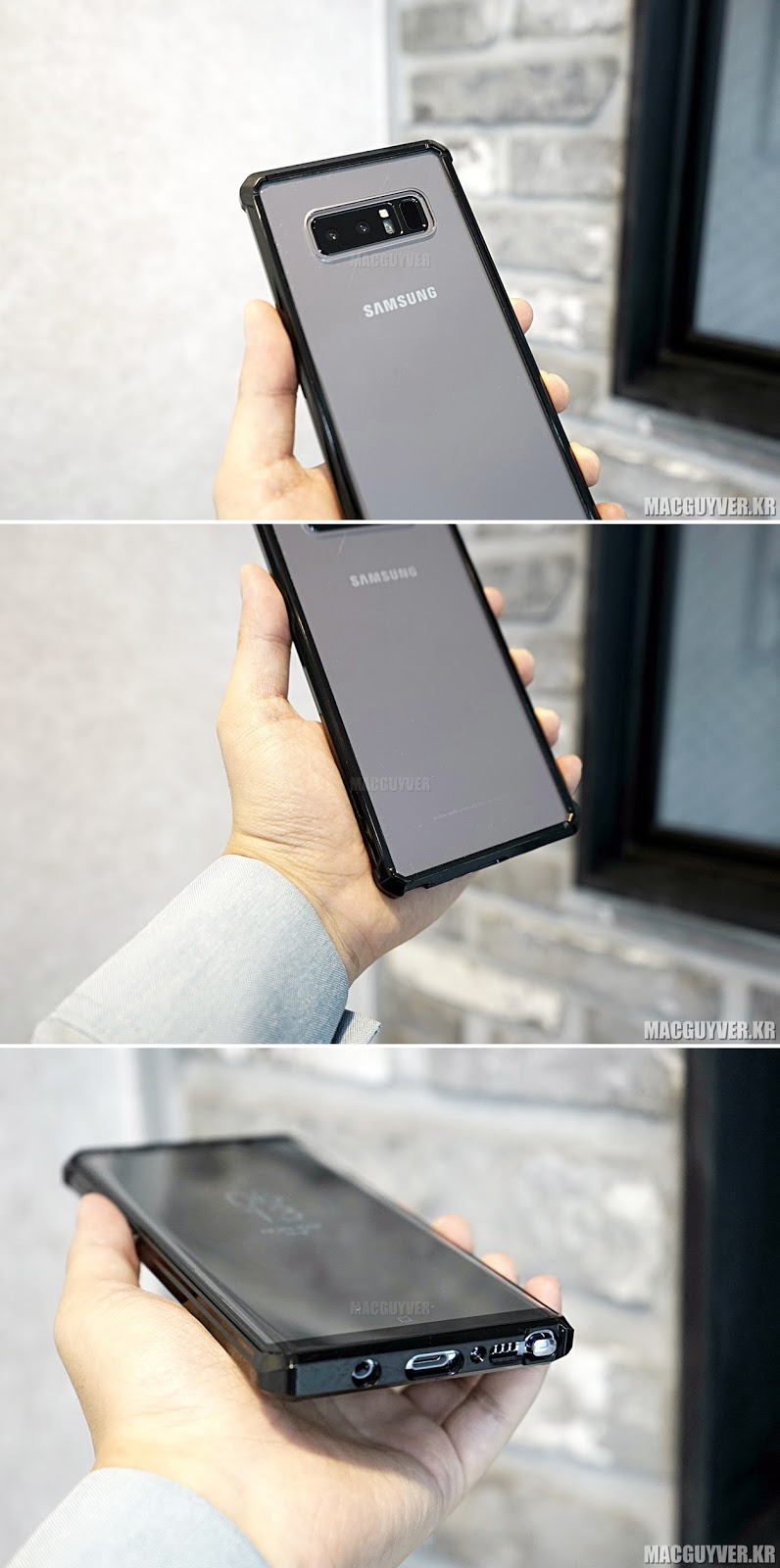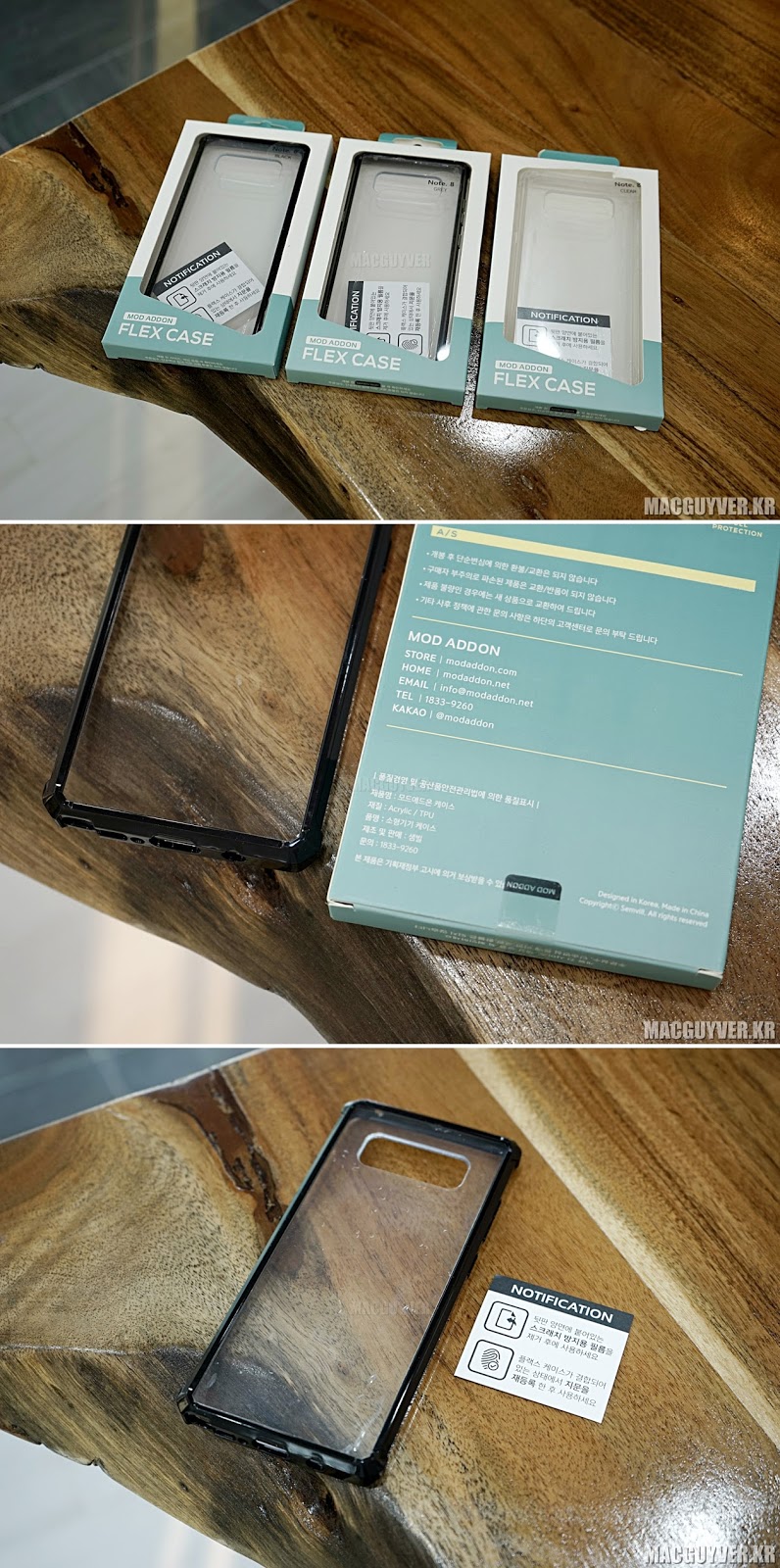 ✎ 측면이 TPU 범퍼로 구성되어서 높은 투명도 및 변색이나 변형이 없는 재질인 모드애드온 갤럭시노트8 플렉스 케이스