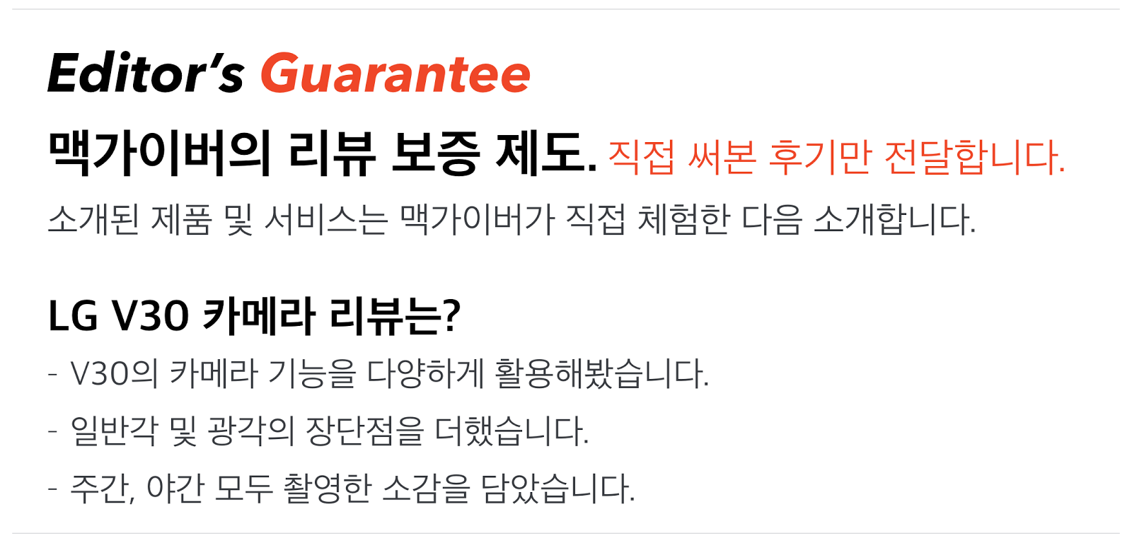 그래서 오늘은 V30의 듀얼 카메라를 살펴보기로 했다. 왜곡 없는 광각을 전달한다는 V30의 카메라는 정말 만족도 높은 성능을 제공해줬을지, 기대 이상의 퍼포먼스를 보여줬을지 살펴봤다.