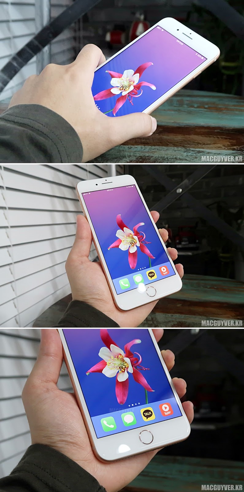 직접 사용해본 아이폰8 플러스에서의 화면은 더욱 부드러운 것을 알 수 있었는데, 이전의 아이폰7 플러스가 다소 푸른색을 일관되게 보여줬다면, 아이폰8 플러스는 경우에 따라서는 푸르게, 또 자연스럽게 보여줘서 만족도가 상당히 높았다.
