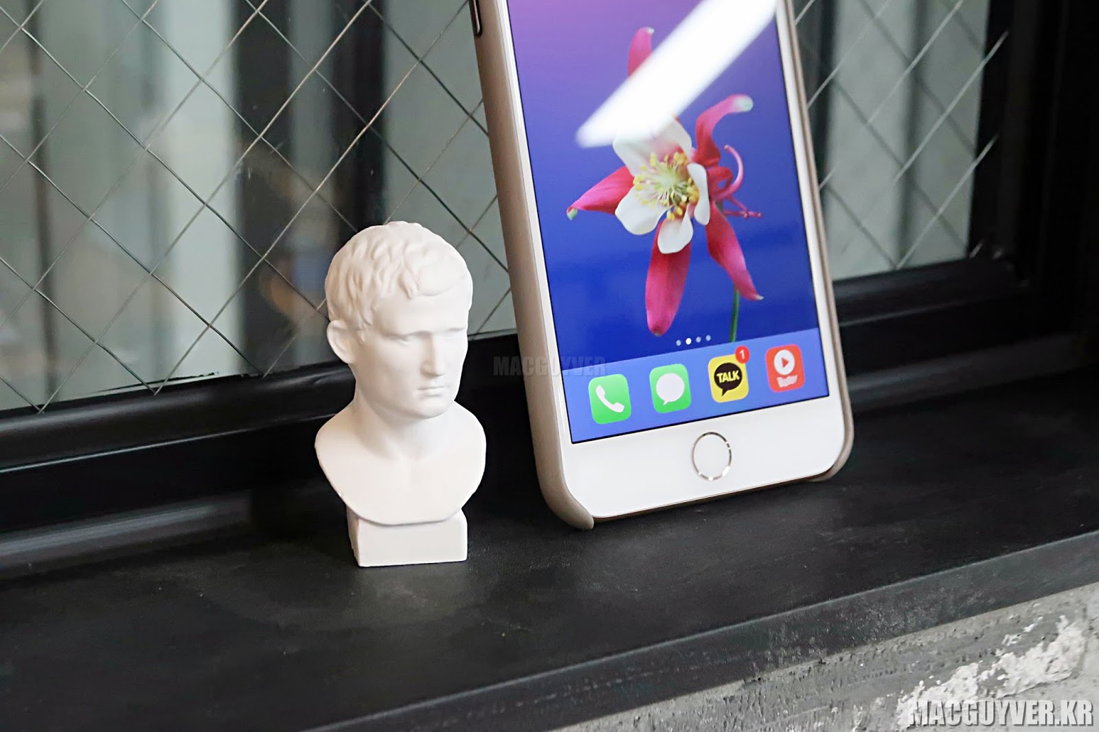 결국 후면에는 듀얼 렌즈와 애플 로고, 아이폰 글자만이 남아 있기 때문에 뒤집어 두어도 제품의 후면을 보는 느낌이 아니라 그 나름대로 존재감이 큰 제품의 한 파티션을 바라보는 느낌마저 들었다.