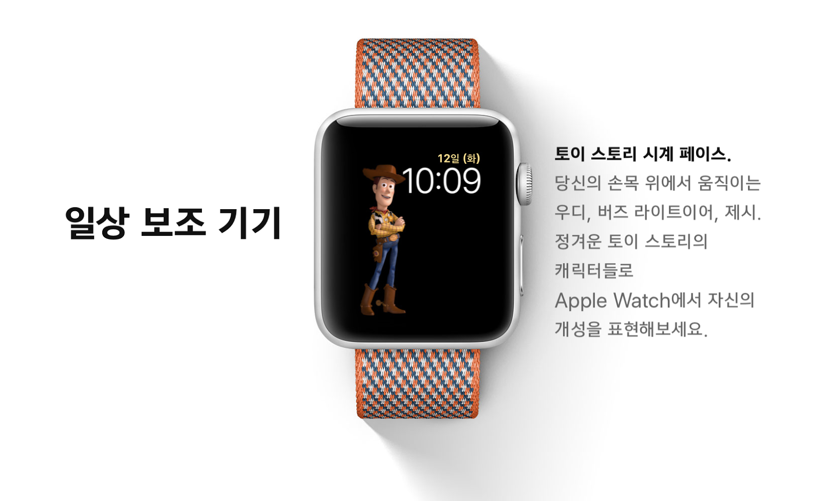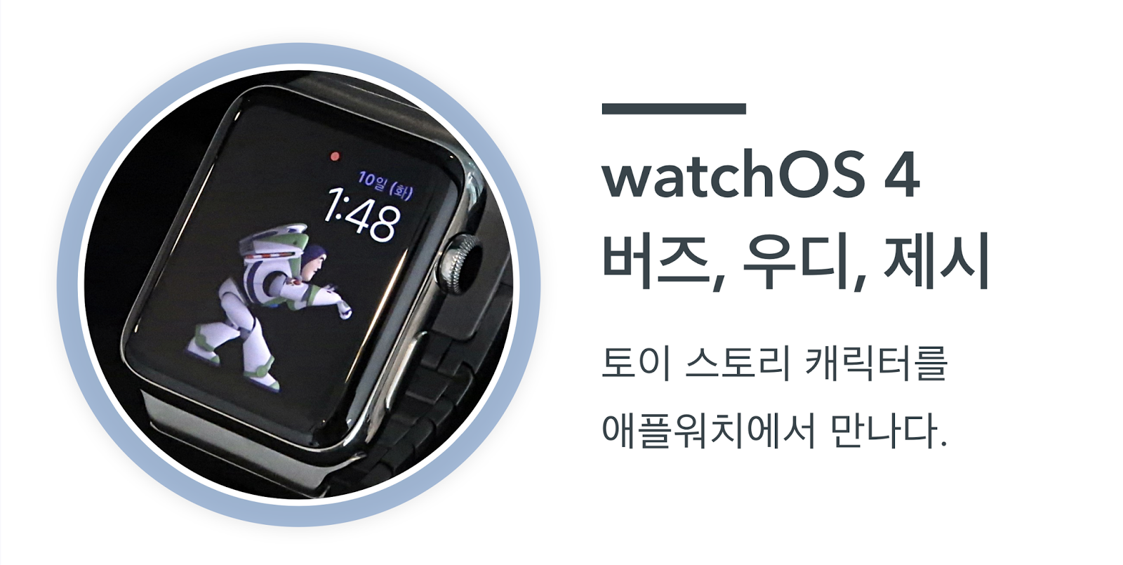 watchOS 4에서 사실 가장 기대되었던 워치 페이스, 즉 시계 페이스로는 토이 스토리의 캐릭터들이 있었는데, 이전 미키 마우스는 너무 유아틱했다면 이번 토이 스토리 캐릭터는 조금 더 실사같기도 했고, 다양하게 움직이는 방식으로 소개되었기 때문에 아기자기한 맛에 관심이 갔던 것 같다.