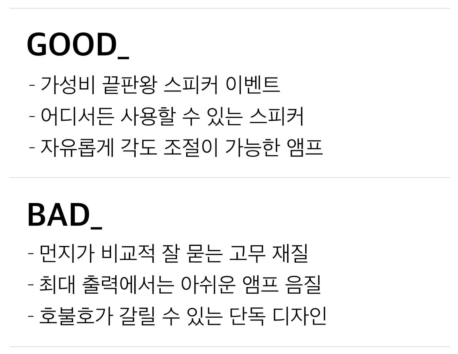 휴대성 대비 음질로 보든, 실내용 스피커와 아웃도어용 스피커 구성으로 선택장애를 날려버렸다는 점에서 보든, 가격을 보든 가성비가 뛰어나다는 것은 부인할 수 없는 사실이고, 이러한 이벤트에 혹하게 되는 것도 당연한 일이다.