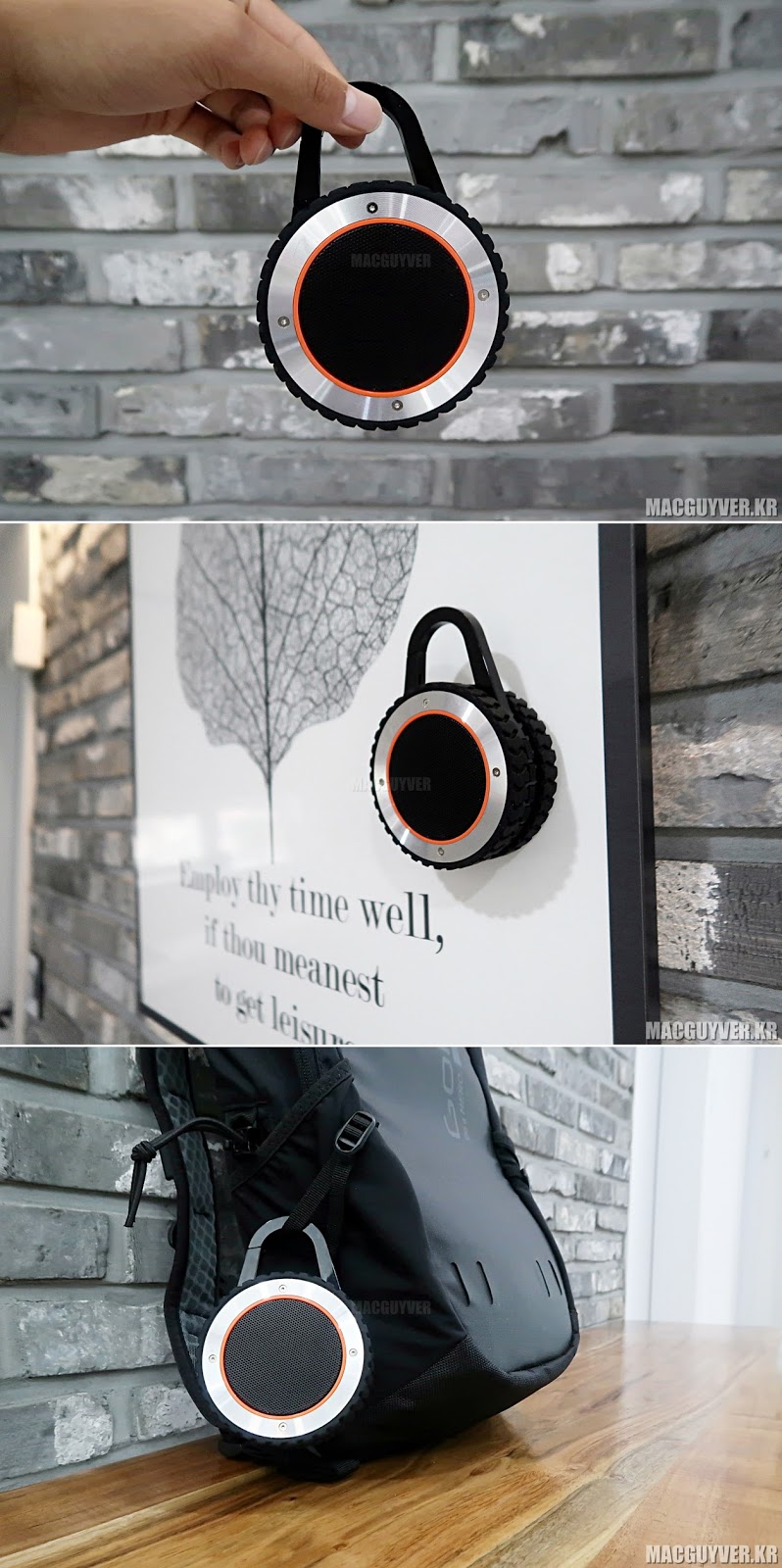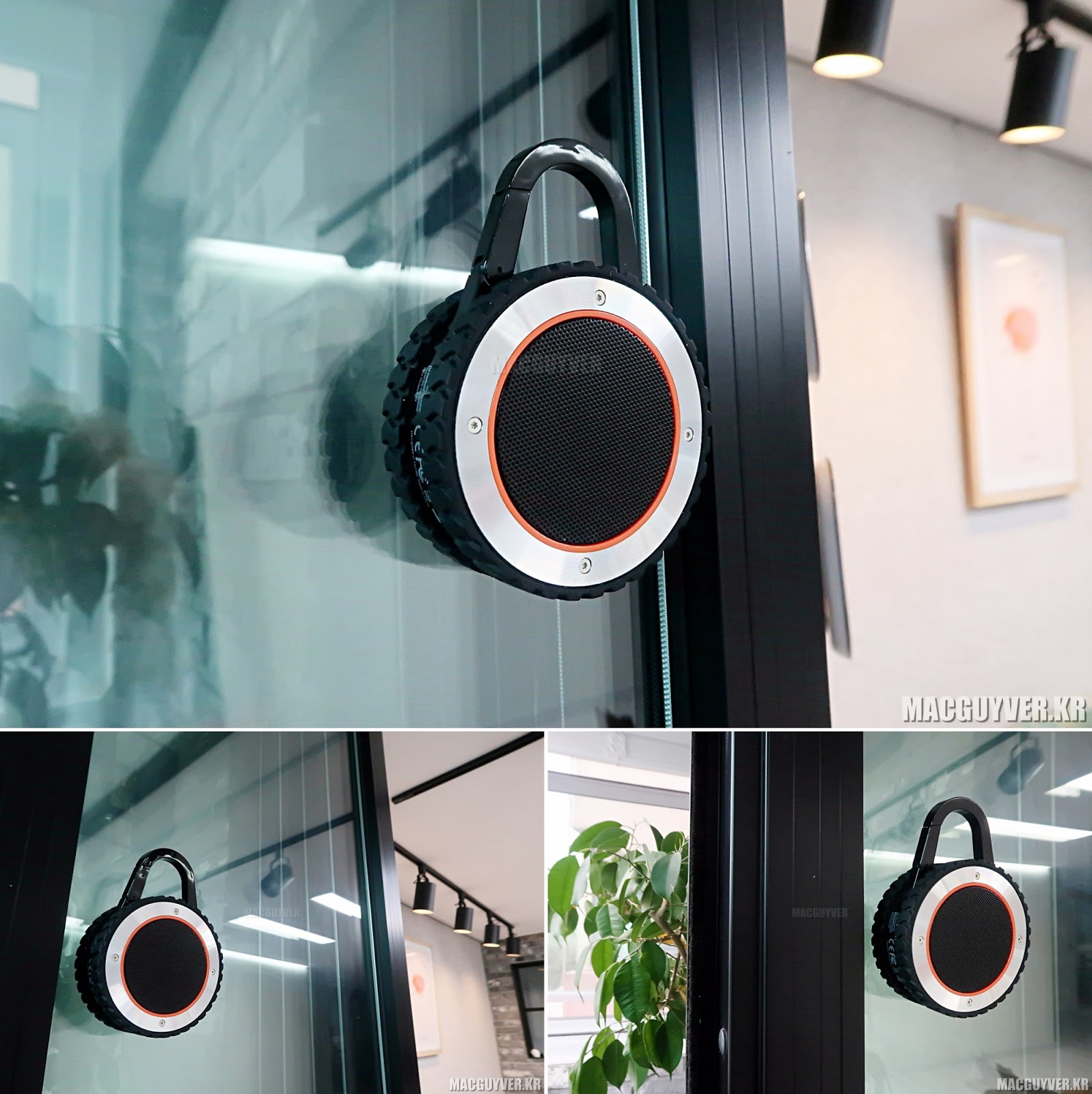 또, 카라비너클립이라는 고리 덕분에 이 아웃도어 스피커를 가방이나 텐트, 자전거에 쉽고 튼튼하게 걸어두고 음악을 즐길 수도 있다. 후면의 흡착판 때문에 욕실이나 주방에서도 음악을 들을 수 있는데, 이처럼 스피커를 내려두기가 애매한 공간에서도 ATS 블루투스 스피커는 전혀 문제가 되지 않는다.