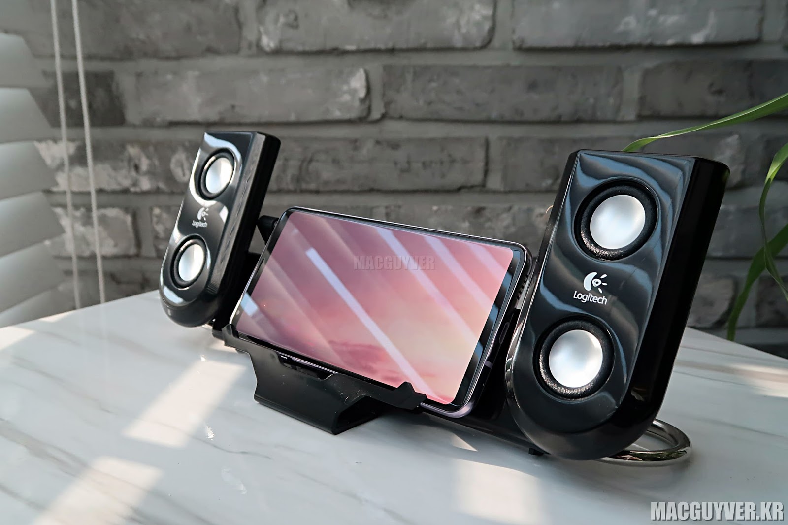 방에서 폰으로 유튜브를 즐겨보는 사람이라면 로지텍 엠프에 폰을 거치해두고 서라운드 사운드까지 즐길 수 있다. 또 필요하다면 Aux선을 컴퓨터에 연결해 PC용 사운드바로 사용하는 것도 물론 가능하다.