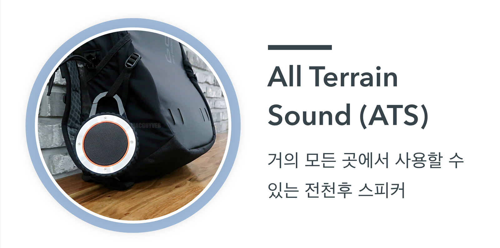 ATS 스피커는 작은 사이즈이지만 야외에서도 사용할 수 있는 음량과 실내에서도 듣기 좋은 음질의 사운드를 들려준다.
