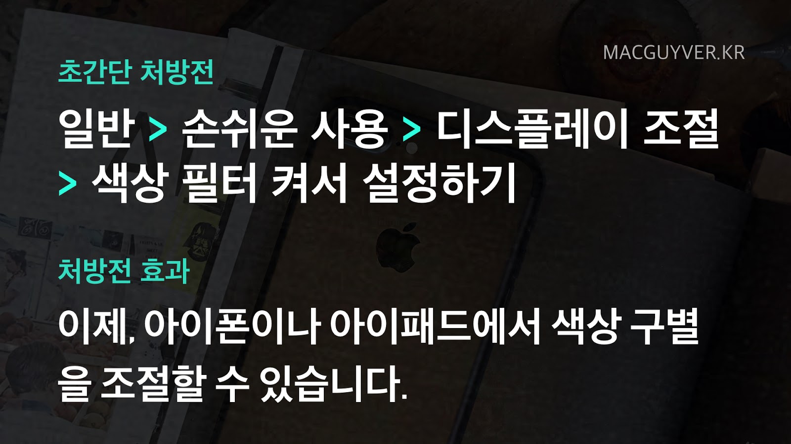 아이폰에는 색상 필터 기능이 있는데요. 색약 또는 색맹으로 인해 화면의 텍스트를 읽는 데 어려움이 있는 사용자들을 위해 색상 필터를 통해 색상을 구별하기 쉽게 조절하도록 설정이 가능합니다. 오늘은 아이폰으로 색상 구별 조절하는 간단한 팁에 대해 알아보도록 하겠습니다.