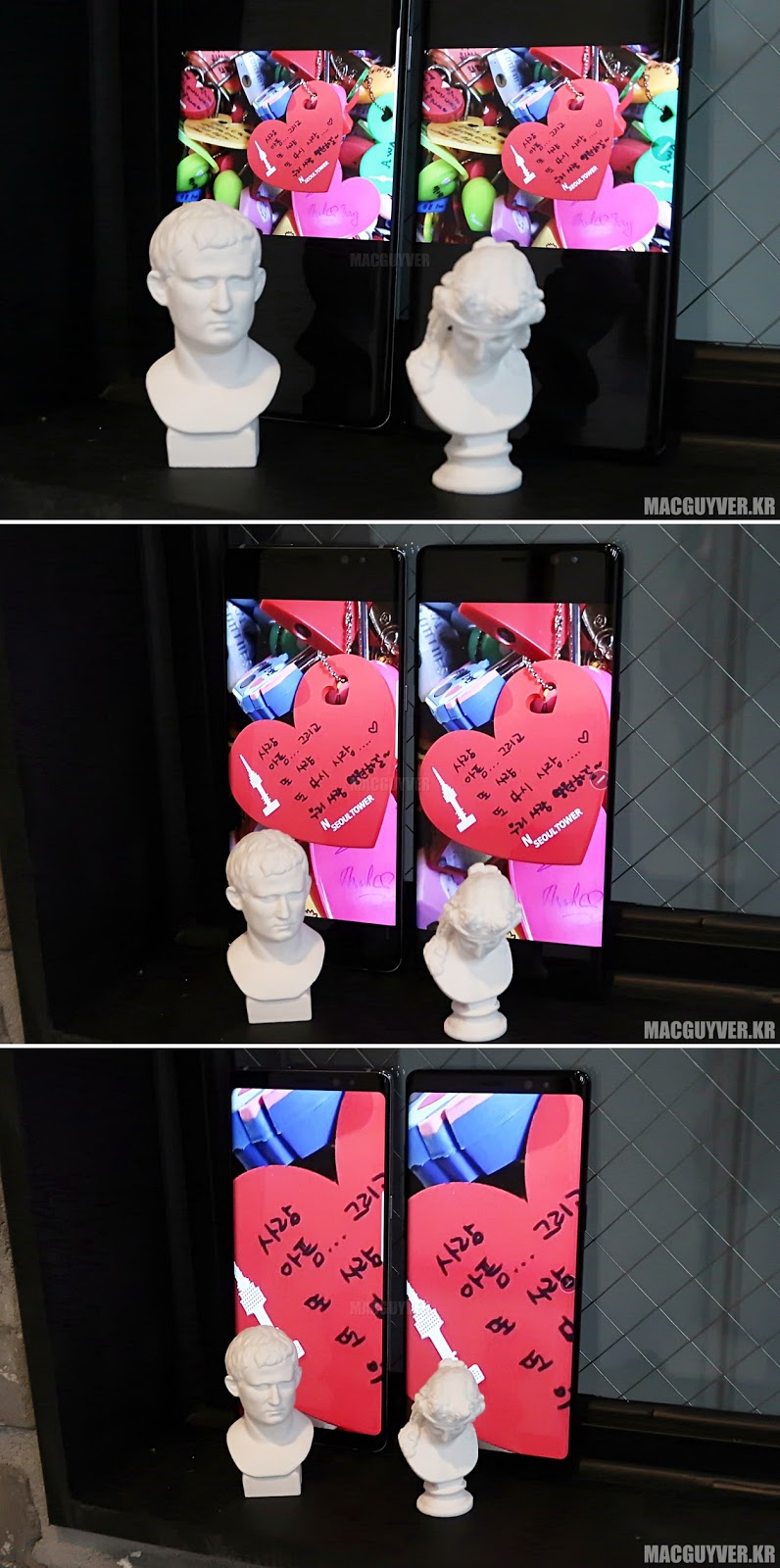 이후 만나본 갤럭시노트8 오키드 그레이 컬러는 나름 정돈된 느낌이었는데, 측면부터 상하단부까지 덮고 있는 부분은 고급스럽게 빛을 반사했고, 후면은 보라색도 아닌, 회색도 아닌 독특한 느낌의 오키드 그레이가 되면서 정체성이 뚜렷해 보였다.