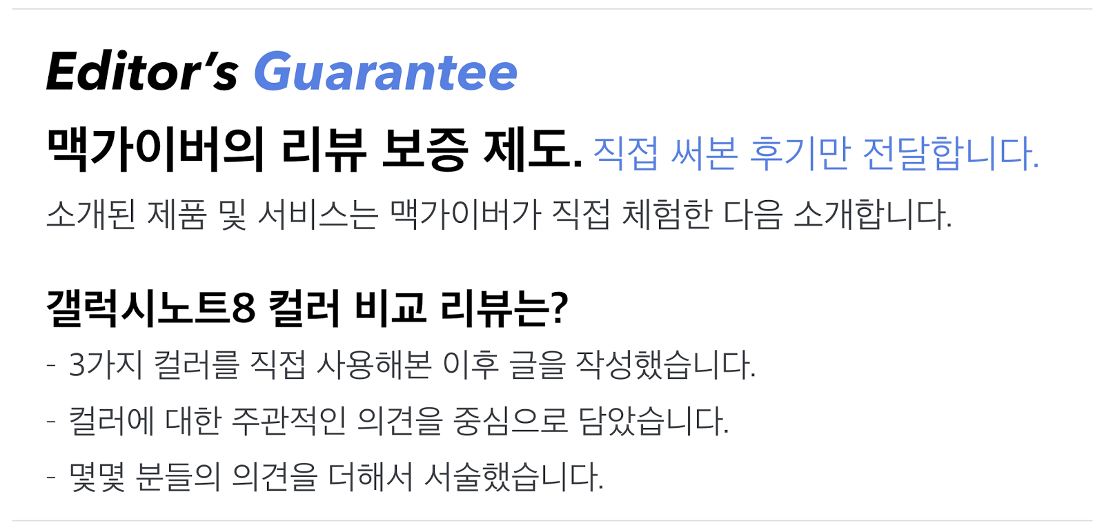 당연하겠지만, 결국은 직접 실물로 보고서 선택하는 것이 정답이다. 디자인과 컬러는 지극히 개인적이며 개개인의 경험에 따라서 전혀 다른 평가가 가능하기 때문이다. - MACGUYVER.