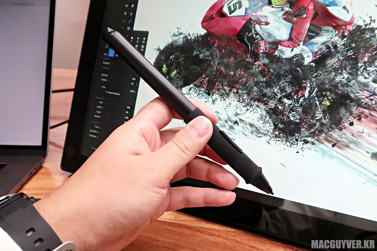 액정타블렛에서 중요한 것이 화면이었다면, 그 다음으로는 그립펜의 역할이 매우 중요하다. 그립펜은 세밀해야 할 뿐만 아니라 원하는 위치에 정확하게 터치를 해줘야 하는데, 여기서 조금만 틀어지거나 포인트가 맞지 않게 되면 작업의 능률이 매우 떨어지기 때문이다.