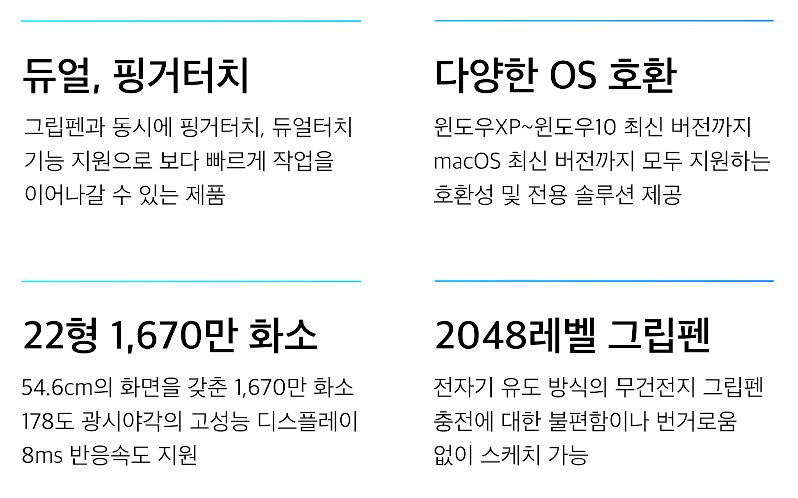 특히나 이 디스플레이는 액정타블렛으로서 전부에 가깝다고도 볼 수 있는데, 색감이나 터치감 및 반응 속도가 매우 중요하기 때문이다.