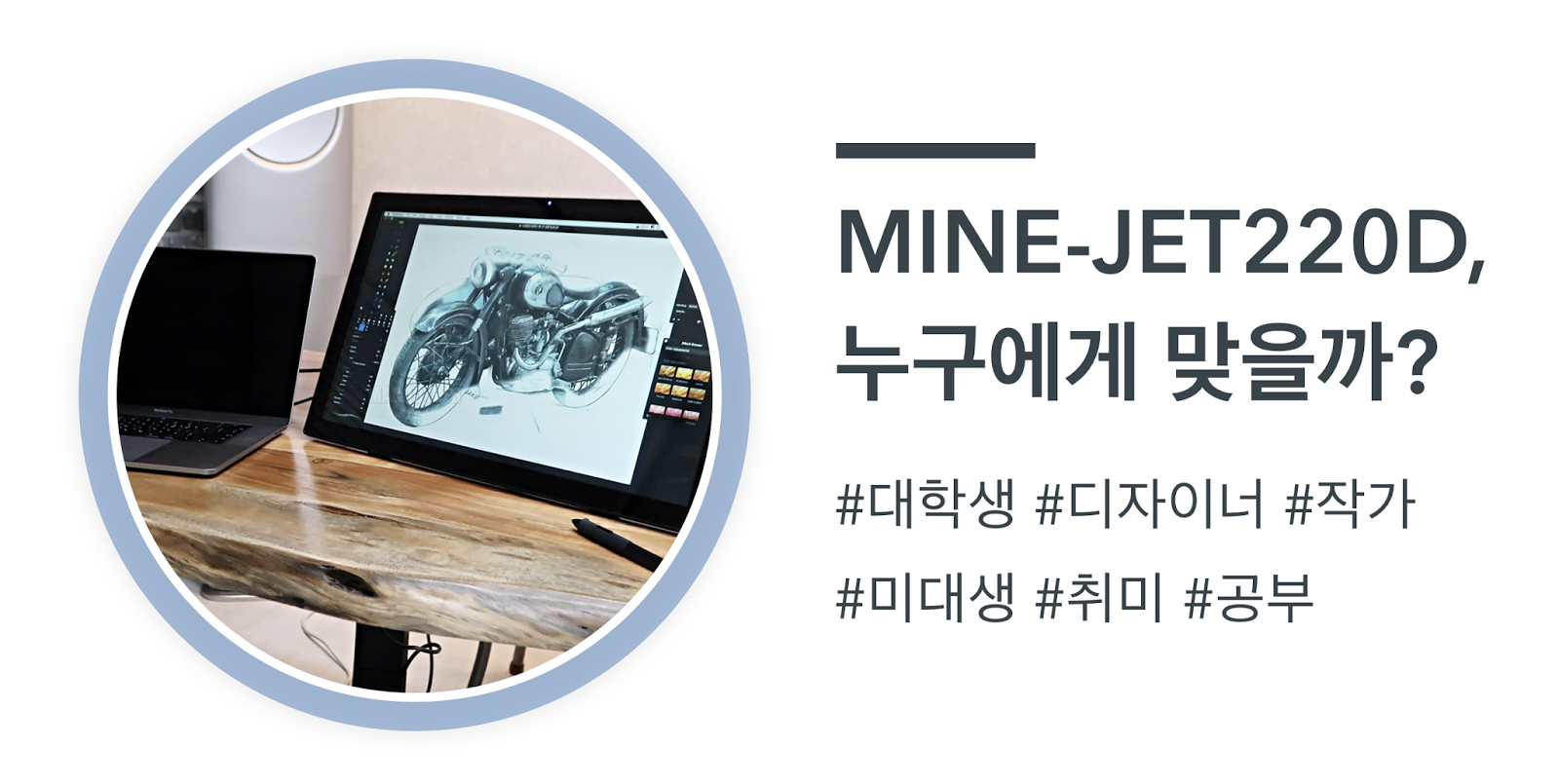 이러한 아쉬움을 달래줄 액정타블렛을 찾던 도중 MINE-JET220D라는 모델명을 가진 장은테크의 신제품을 알게 되었는데, 고가의 제품과 비교하자면 반값에서 그 이상으로 저렴하면서도 동시에 성능까지 뛰어나기 때문에 가성비가 매우 높은 제품임을 알 수 있었다.