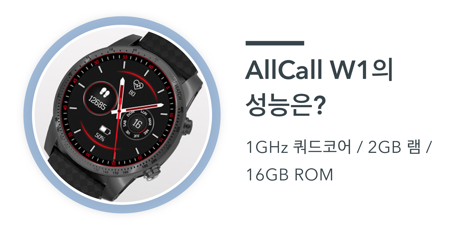 AllCall W1은 CPU로 MTK6580 1GHz 쿼드코어를 탑재했고, 2GB 램을 적용했다.