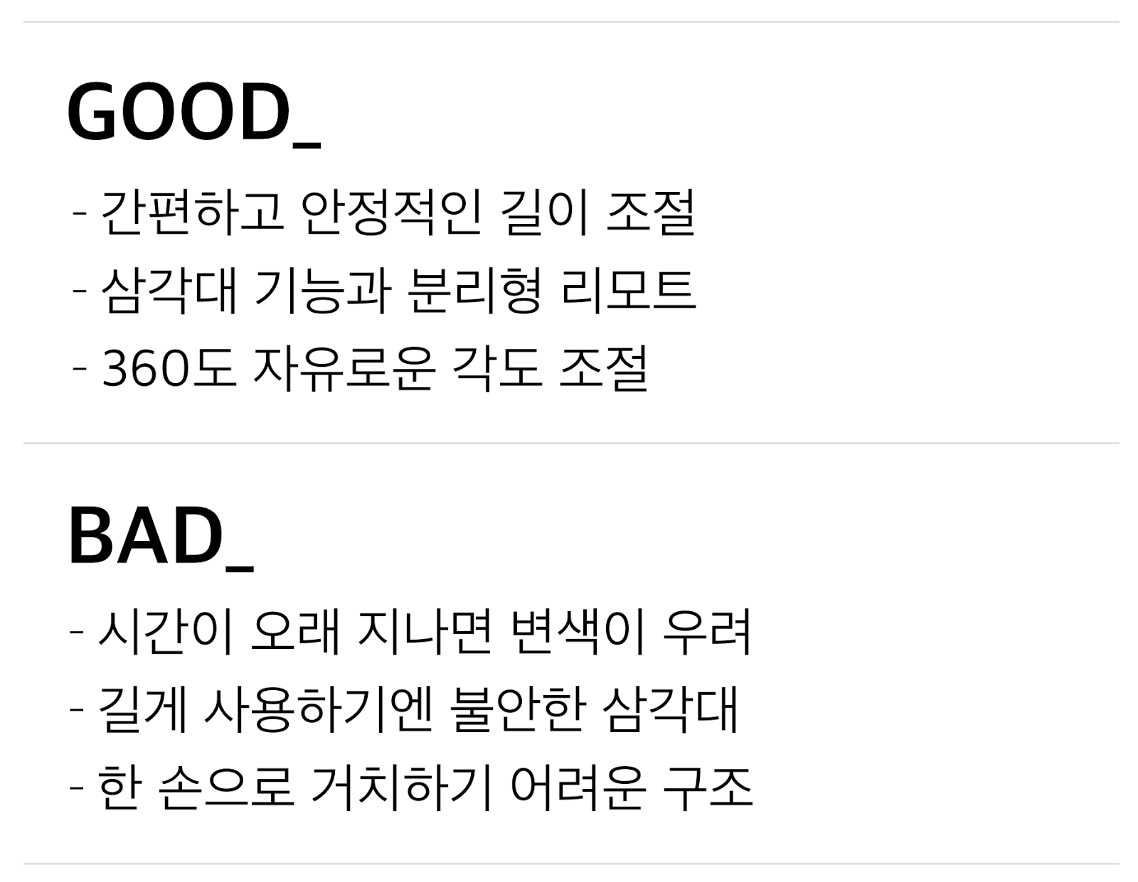 ✎ 특히 짧은 길이에서 삼각대로 사용하기 유용했다.