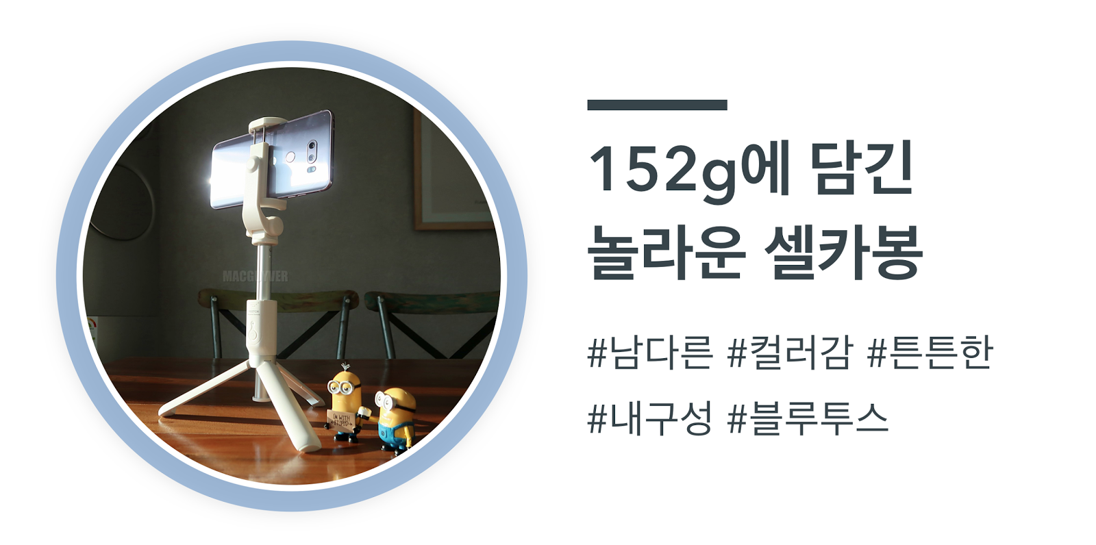 올가을 단풍 여행이나, 올겨울 다양한 여가 활동에 있어서도 꼭 적합한 단 하나의 셀카봉이 되지 않을까 싶었다. 여행을 떠나서, 혹은 일상 속에서도 스마트폰의 촬영 능력을 더욱 높여줄 요이치 블루투스 셀카봉을 통해서 사진의 맛을 살려보는 것도 좋을 것 같다. - MACGUYVER.