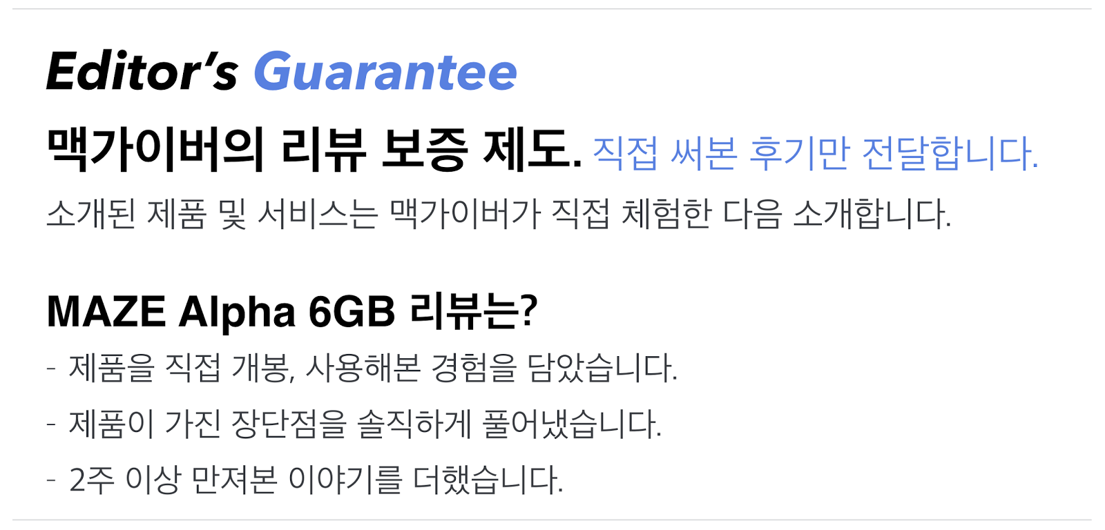 그렇다면, MAZE Alpha 6GB RAM 4G Phablet은 정말 선택해도 좋을 스마트폰일까? 우선, 스마트폰에 30만원 이상 사용하기 싫은 분들이나, 평소에 스마트폰을 자주 떨어뜨리는 분들이라면 좋은 대안이 될지도 모른다.