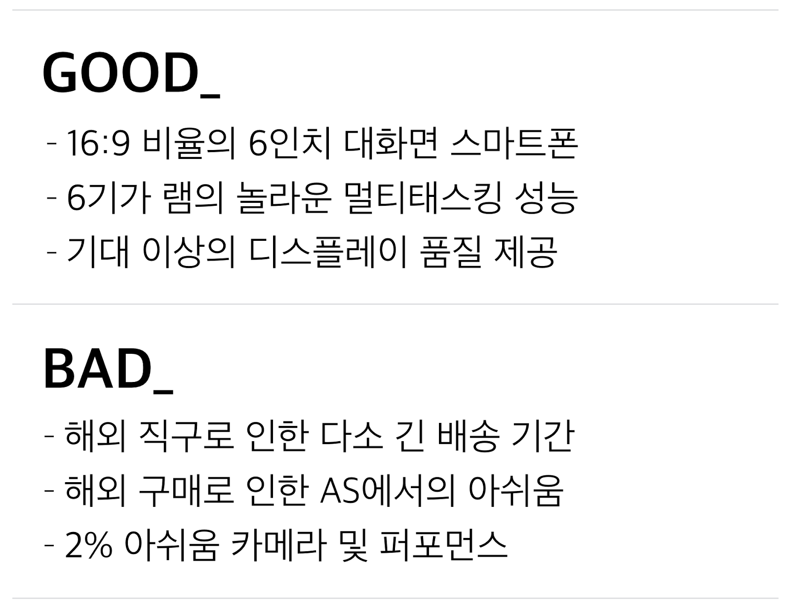 또한, 6인치 대화면이 16:9 비율로 탑재되어서 한 손으로는 쉽게 조작하기 힘들다는 것 또한 느낄 수 있었다.