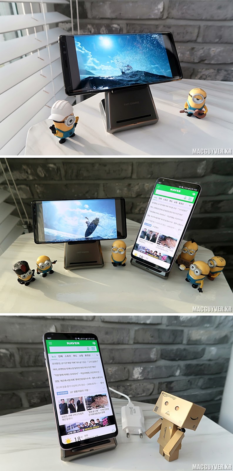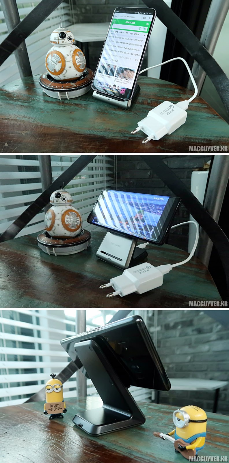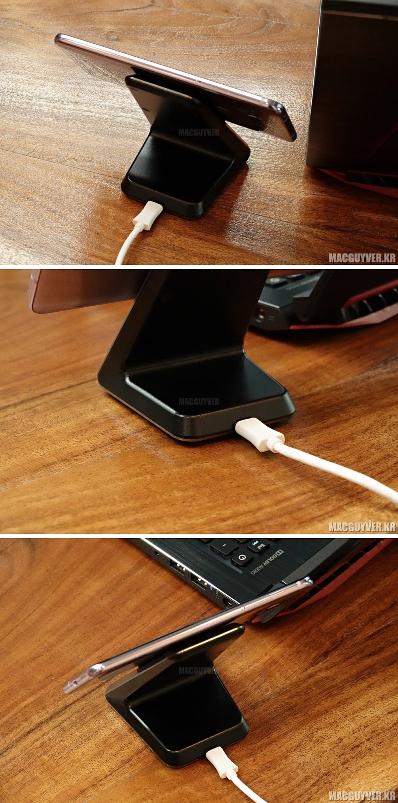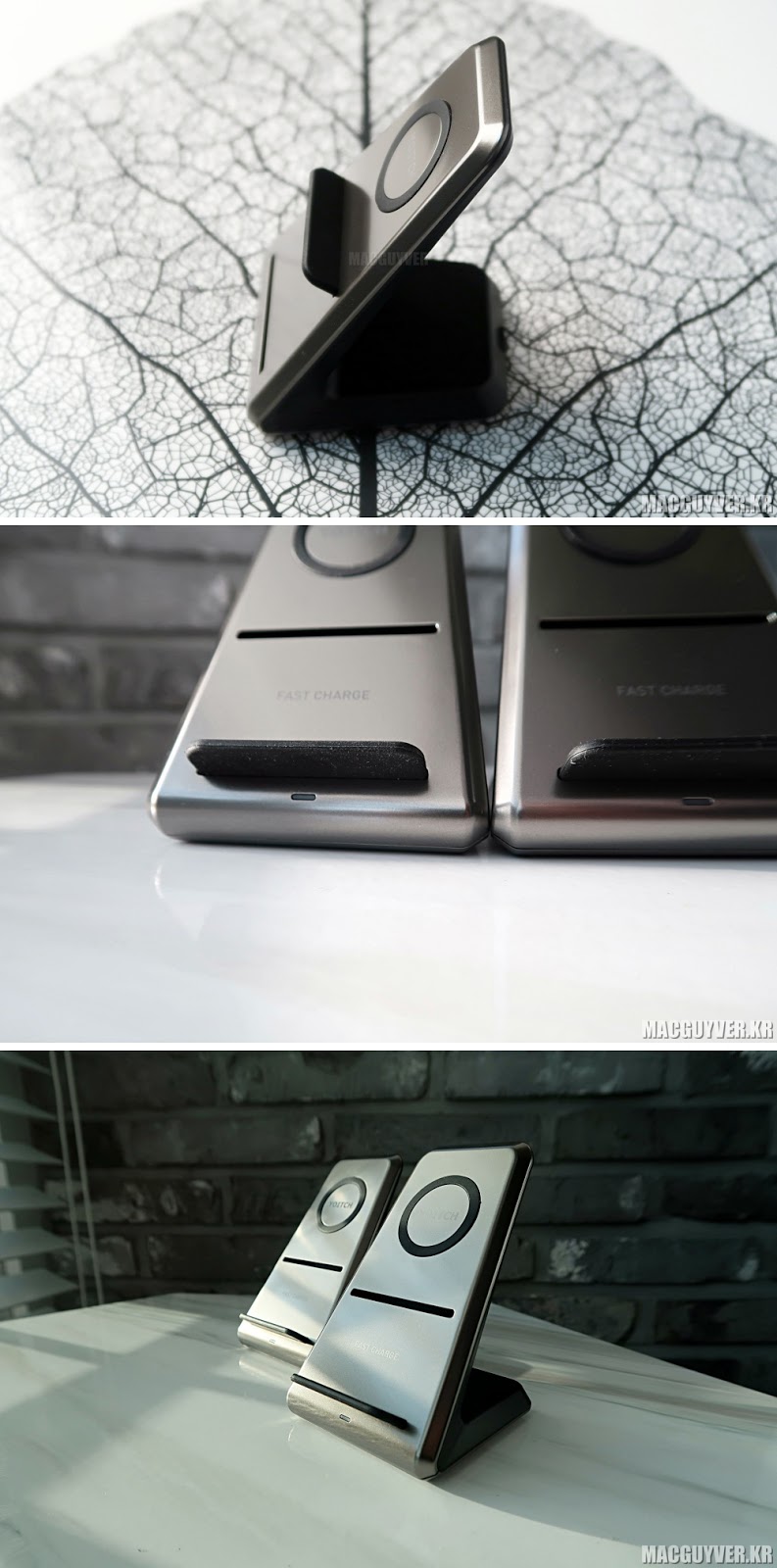 원한다면 가로로, 또 세로로 거치할 수도 있고 빠른 속도로 무선 충전을 활용할 수도 있기 때문에 매번 번거롭게 선을 연결하고 분리하는 일 없이 바로 폰을 들어서 원하는 작업을 하고서, 다시 내려놓으면 그만이기 때문이다.