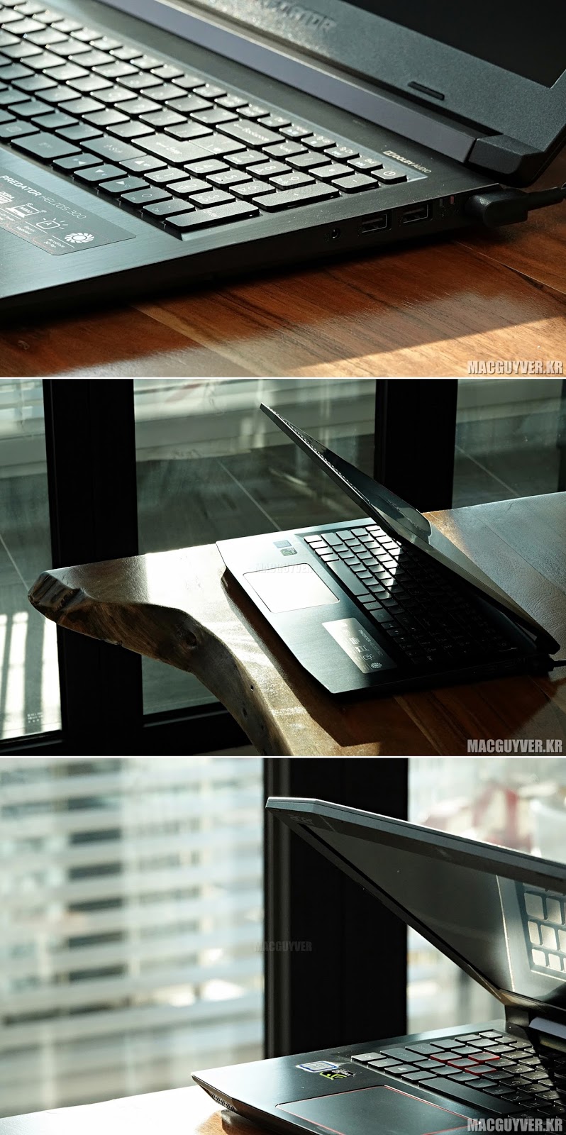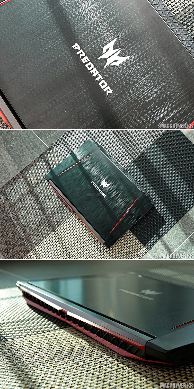 일단 겉모습은 여느 노트북들과 마찬가지로 디자인에서 ‘나 게이밍 노트북이요.’ 하는 모습을 하고 있긴 하다. ‘프레데터’라는 이름을 디자인으로 표현하고 있는 것 같은데, 그러면서도 은근히 비교적 슬림한 체형을 하고 있었다. 다른 노트북들처럼 투박하다는 느낌은 덜했던 것.