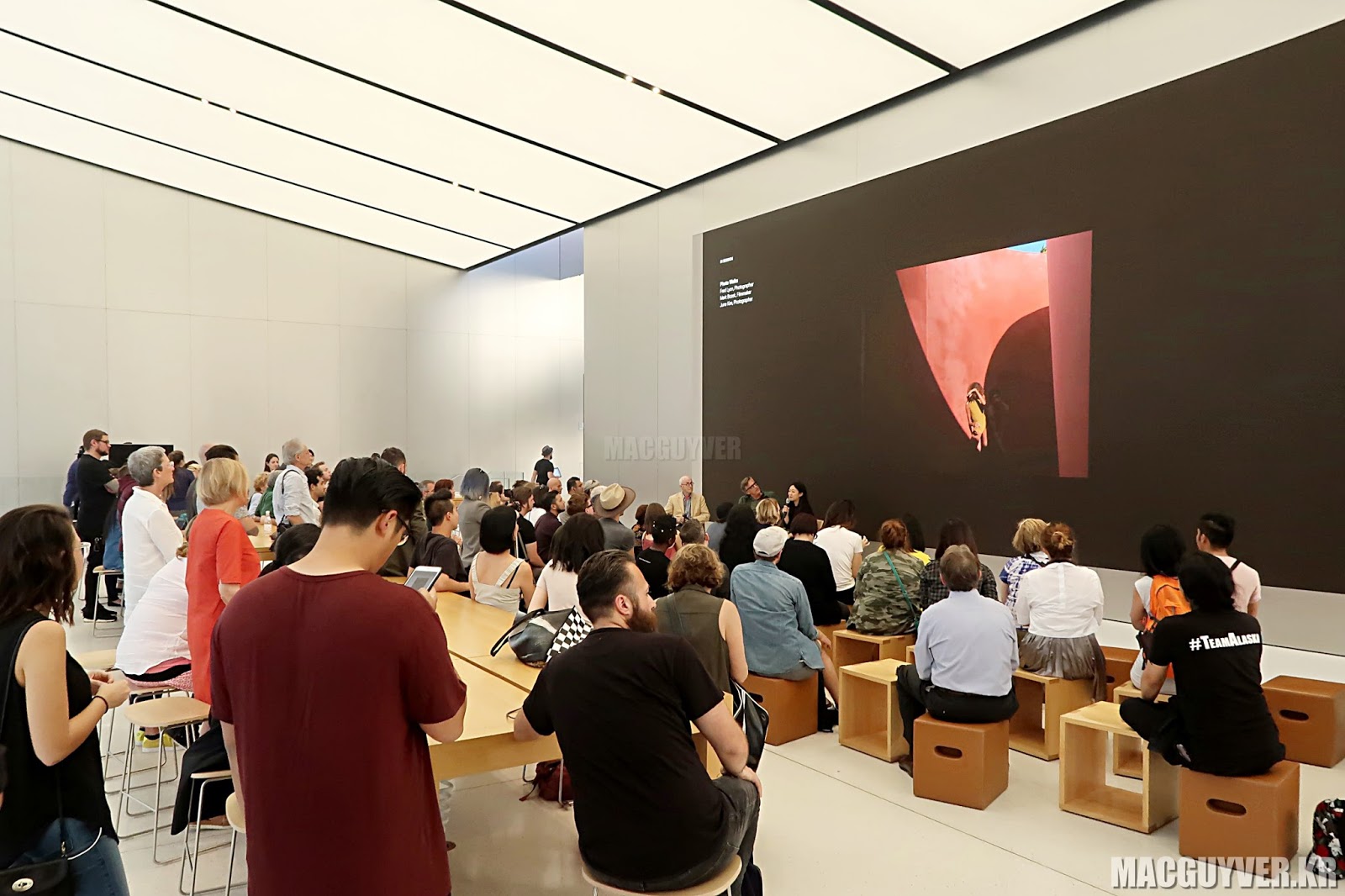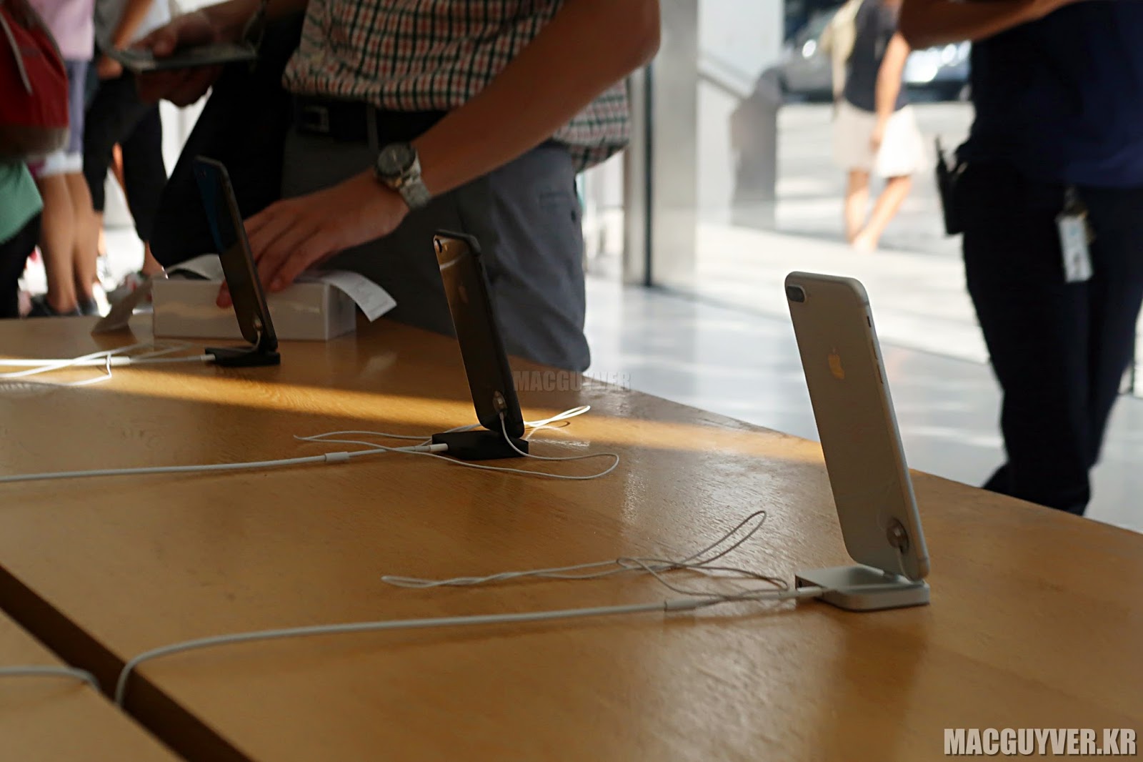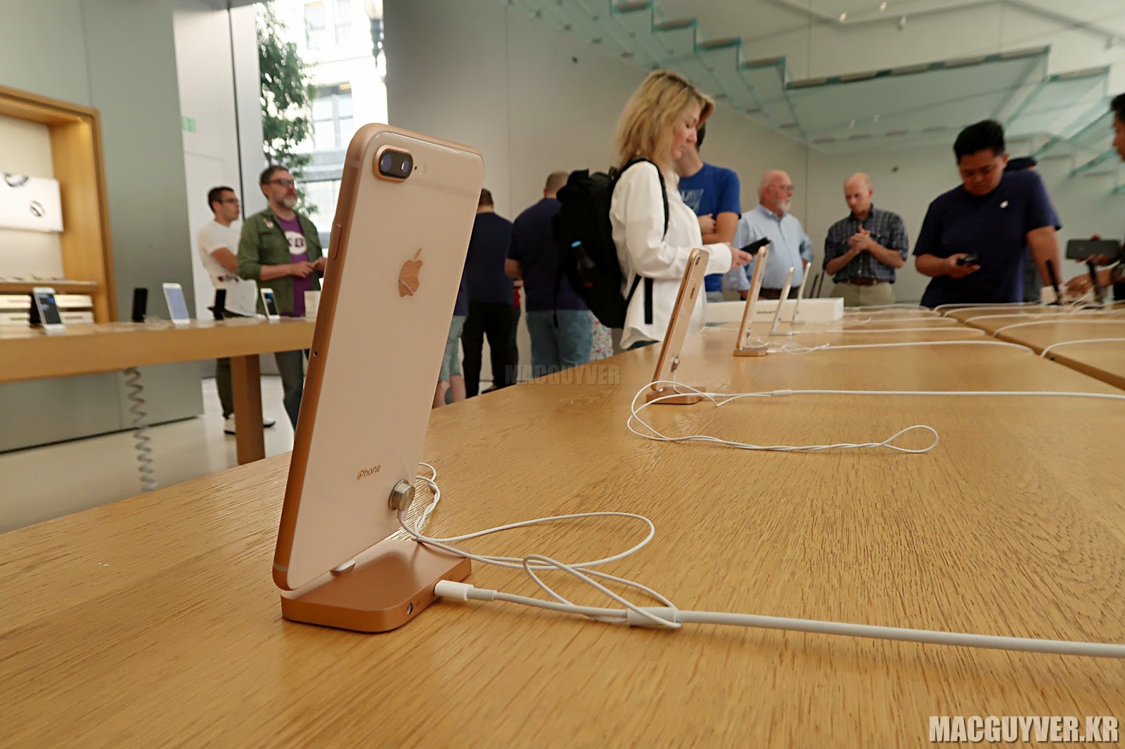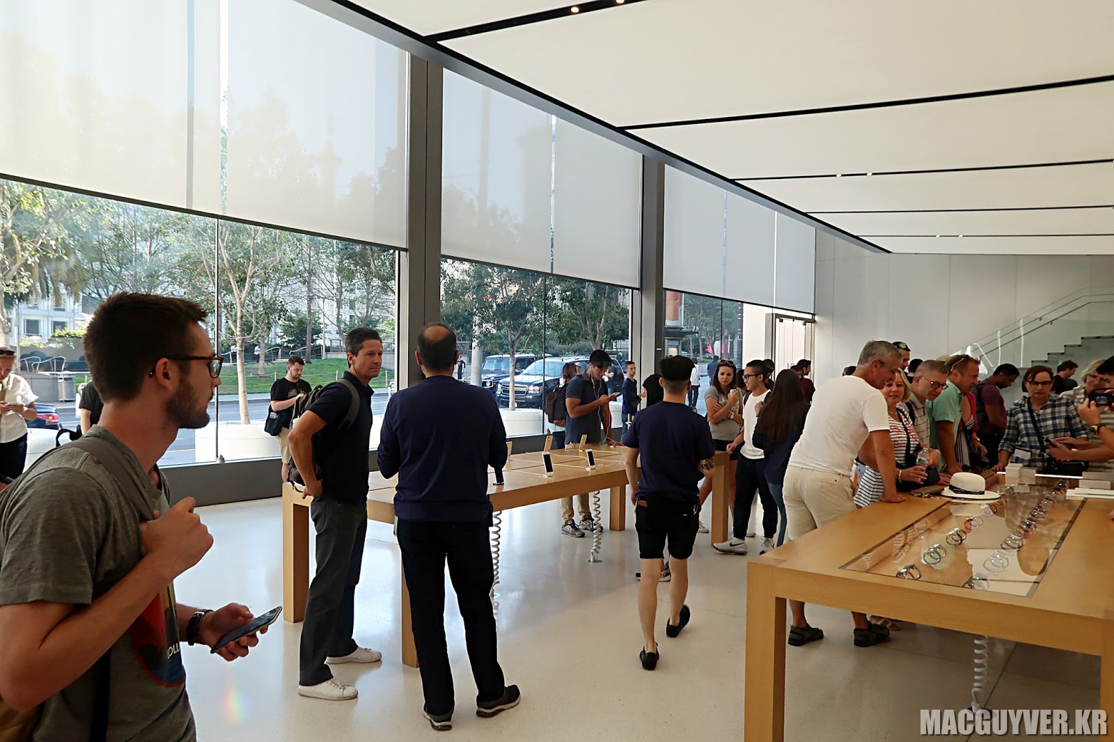 1층에만 해도 핸즈온 리뷰를 촬영하기 위해 온 리뷰어들, 관광 코스로 애플스토어에 쇼핑하러 온 듯한 여행객들, 아이폰8을 고민하는 현지 소비자들 등 다양한 부류의 사람들이 애플스토어의 체험 데스크를 가득 메웠고, 아이폰8을 구입하기 전 예약을 위해서도 줄을 서야 했다.