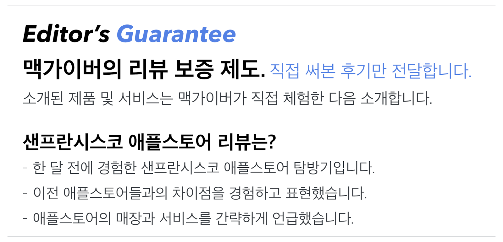 그럼에도 서울뿐 아니라 한반도 전체에서도 찾아볼 수 없는 애플스토어가 샌프란시스코에는 위치하고 있었다.