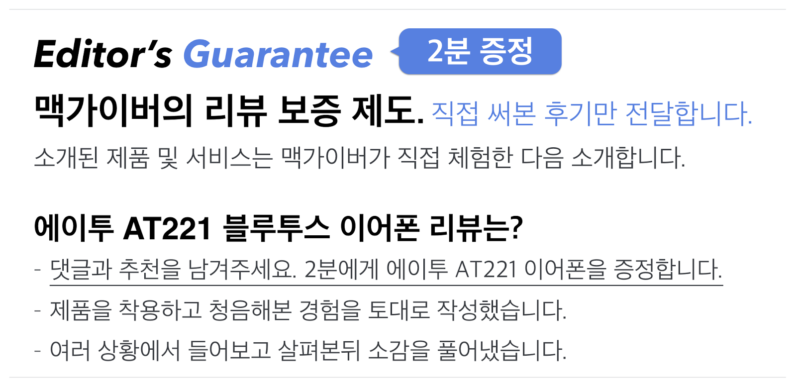 무선이라서 음질이 아쉬운 것이 당연하다고 생각했다면 오산이다. 요즘은 무선으로도 얼마든지 유선에 준하는 사운드를 경험할 수 있기 때문이다. 그 점에서 에이투 AT221은 특별했고, 기억에 남는 제품이라 부를 수 있었다.