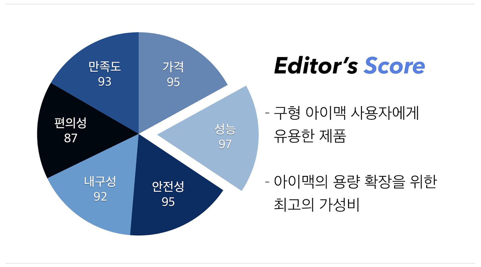 이러한 가격적인 장점은 업그레이드를 할 경우 용량의 차이를 결정짓기도 하기 때문에 매우 중요하다. 개인적으로는 512기가 용량의 50만원대 제품을 구입한다면 구형 아이맥의 생명 연장 및 사용자 경험의 업그레이드에도 아쉬움이 없을 것 같았다.