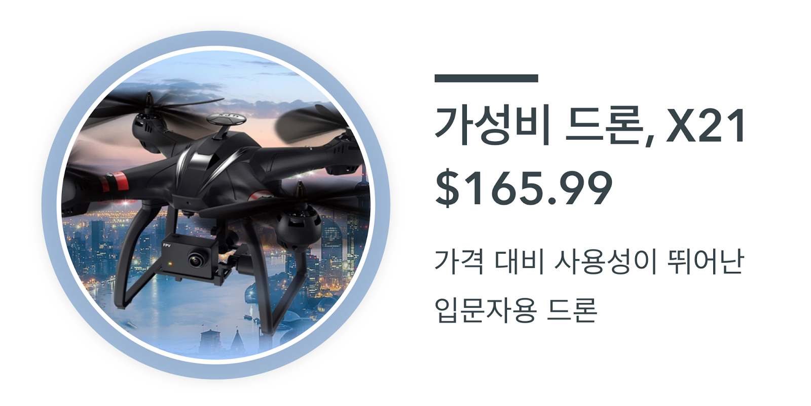 카메라가 달린 드론은 비싸다. ‘기술’이라 부를만한 기능들을 품고 있는 드론들은 기본적으로 100만원을 호가한다.