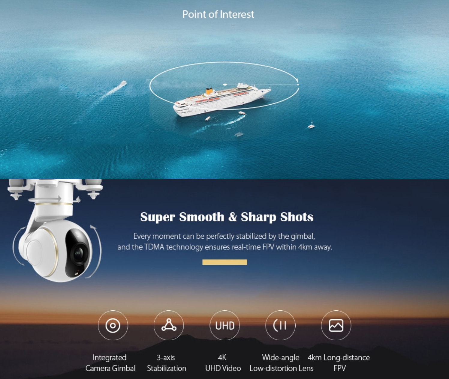 배터리가 부족하면 자동으로 돌아오고, 특정 포인트 주변을 자동으로 돌며 작품을 만드는 궤도모드도 지원한다.