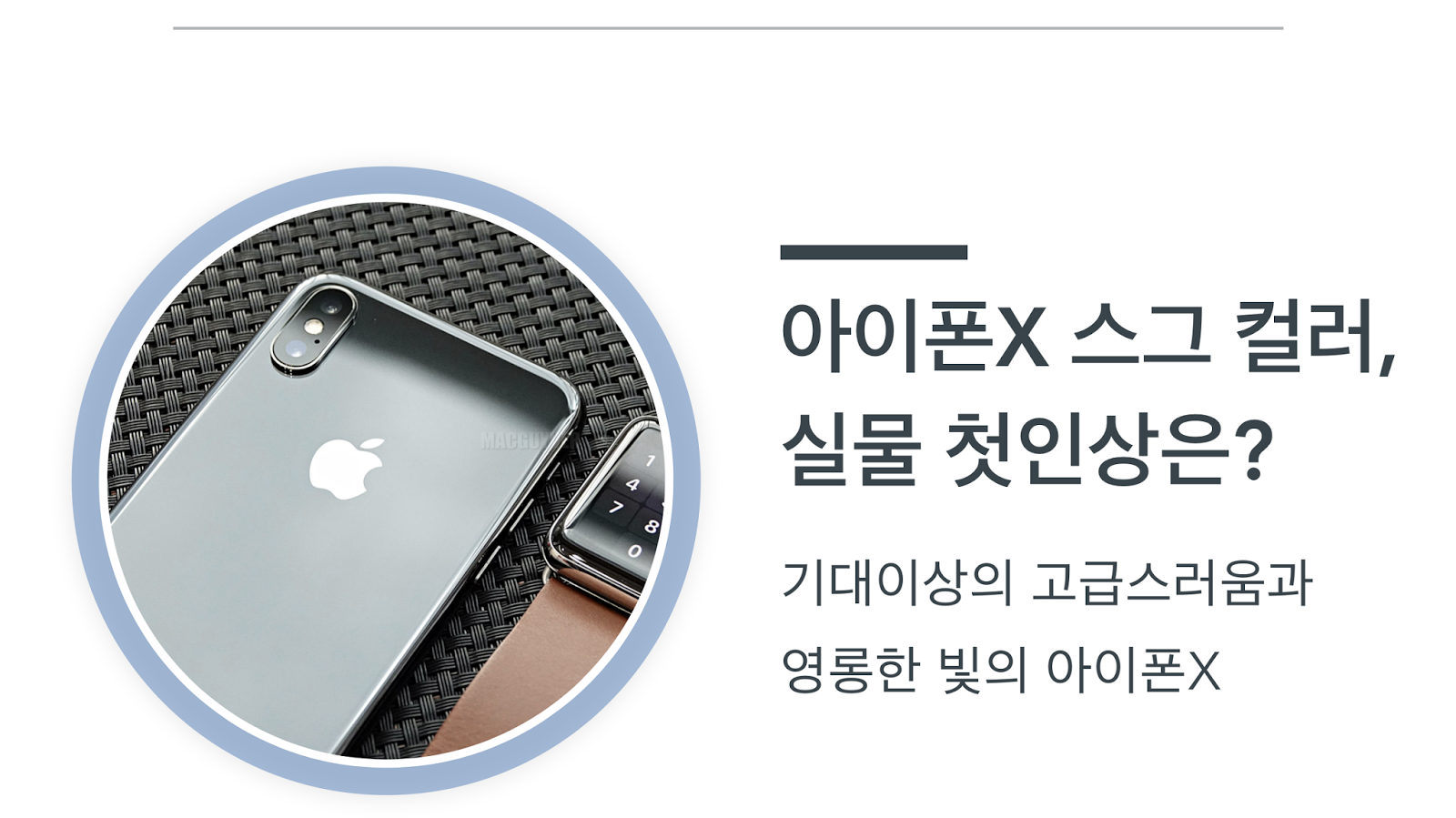 사실, 실버 컬러에 더 눈이 가기는 했지만 어쩌다 보니 스페이스 그레이 컬러를 만나게 되었다. 지인이 홍콩 여행을 떠나면서 어렵게 어렵게 구해온 아이폰X(텐)은 스페이스 그레이 컬러 및 다크 스테인리스 스틸 컬러의 조합으로 검은색의 조합이라 부를 수 있었다.