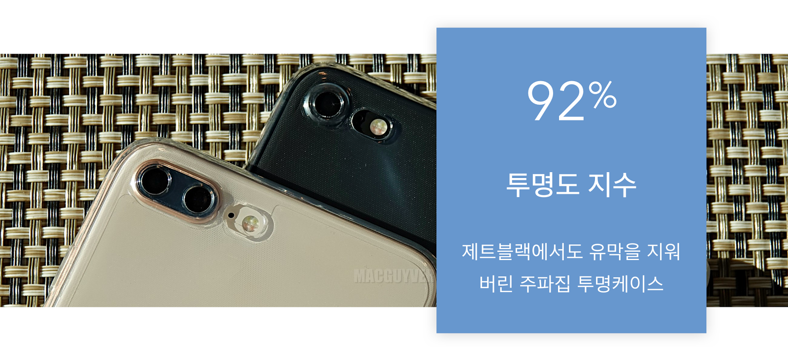 아이폰8 케이스 및 아이폰7 케이스를 찾는 분들에게 1+1 주파집 슬림핏 케이스가 좋은 이유라면, 앞서 스펙 표에서 알 수 있는 것처럼 독일산 고급 TPU로 제작되어서 황변 현상을 10배까지 예방해주기 때문에 아마도 케이스가 변색되기도 전에 폰을 바꿀 가능성이 더 높기 때문이다.
