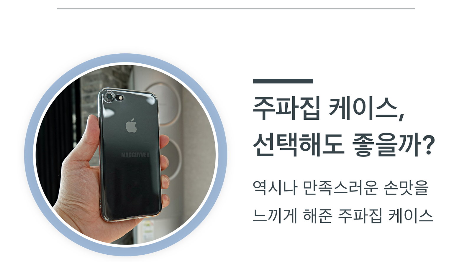 그럼에도 집에서는 생폰으로 사용하다가, 외출을 하거나 운동을 할 때에만 착용을 하더라도 얼마든지 장점을 활용할 수 있는 케이스이기 때문에, 아이폰8 케이스 및 아이폰7 케이스와 아이폰6s 케이스를 찾았던 분들이라면 1+1 주파집 슬림핏 케이스를 고민해보는 것도 좋을 것 같았다. - MACGUYVER.