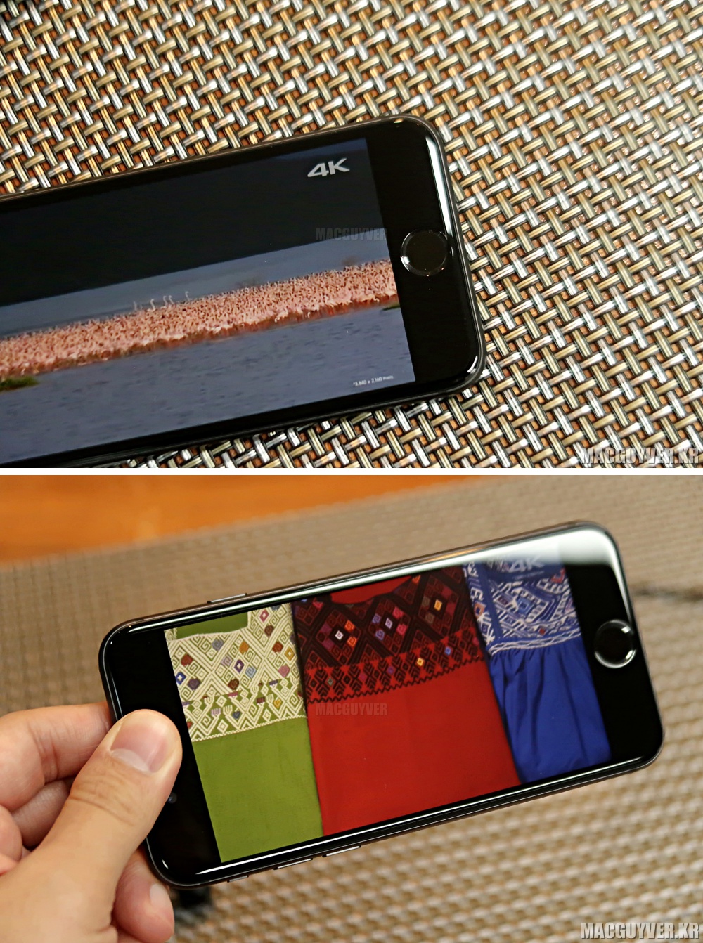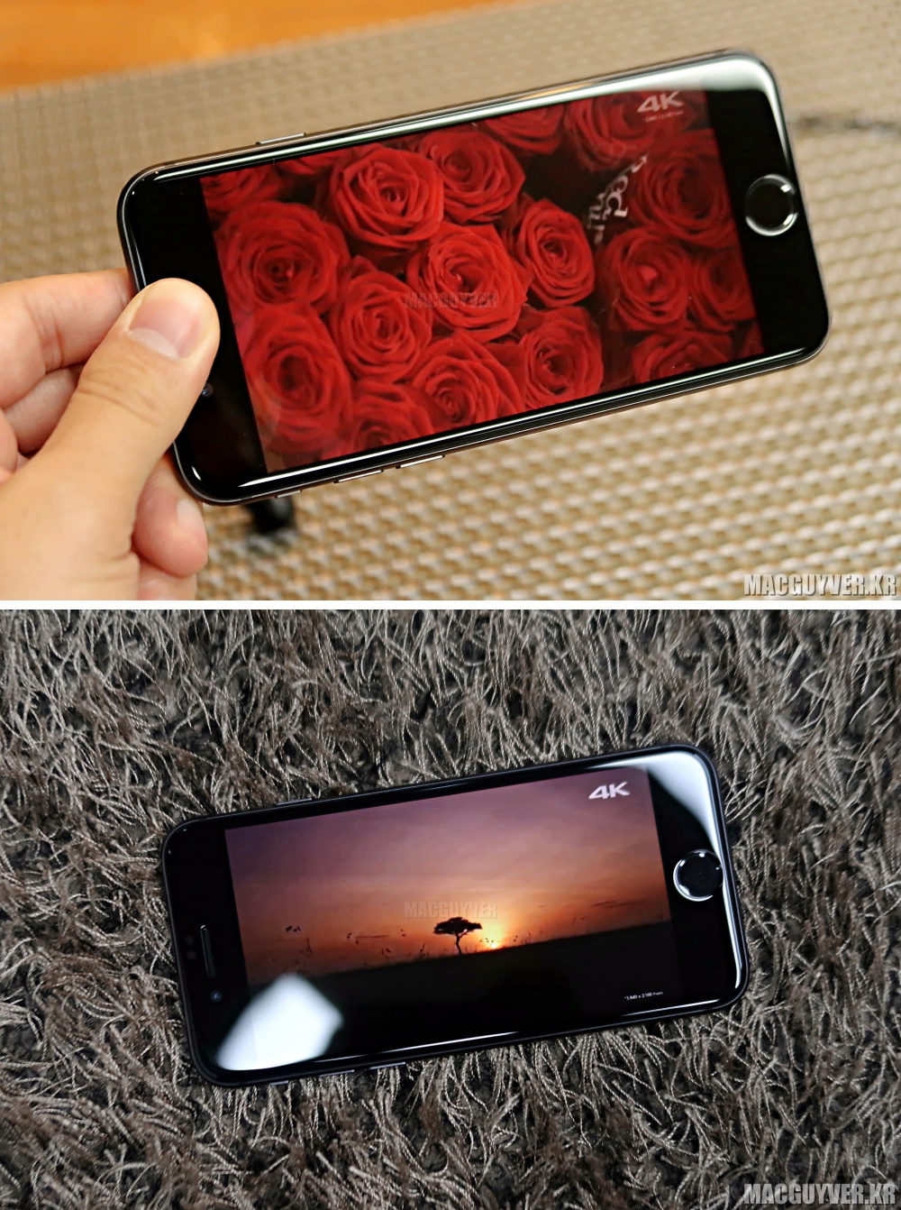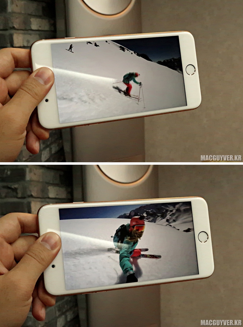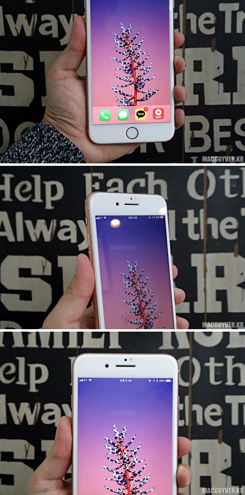 가장 먼저 눈에 띄는 부분은 아이폰8에서 새롭게 적용된 트루톤 디스플레이가 있는데, 이 기술은 센서를 통해서 주변광을 받아들이고, 결과 색감의 차이에 따라서 자연스러운 화면 색감을 보여주도록 바꾸는 기능을 말한다.