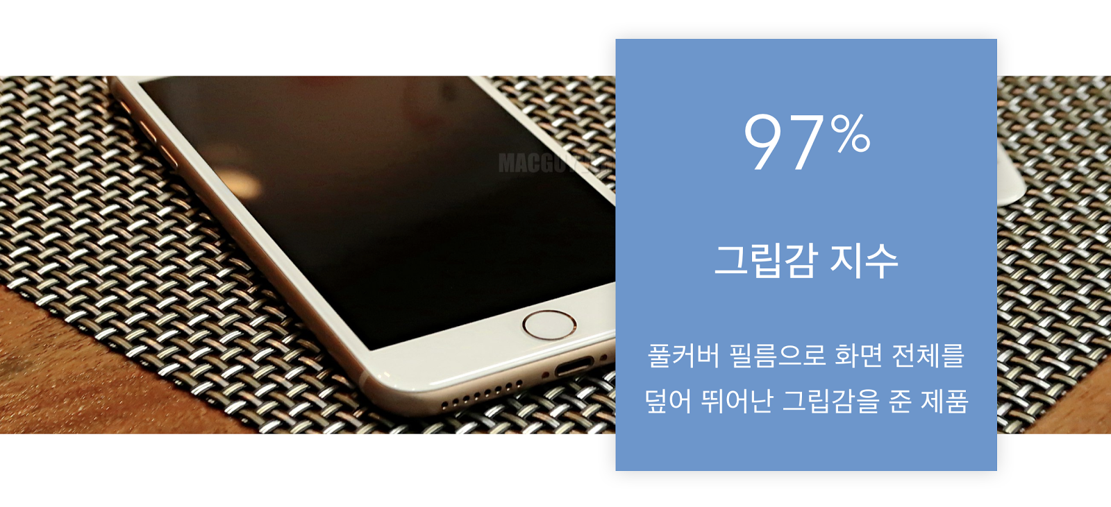 또한 풀커버 필름이기 때문에 화면 전체를 덮어서 그립감이 뛰어날 뿐 아니라 먼지가 들어가거나 흠집이 발생될 염려가 거의 없다는 점도 만족스러운 부분 가운데 하나였다.
