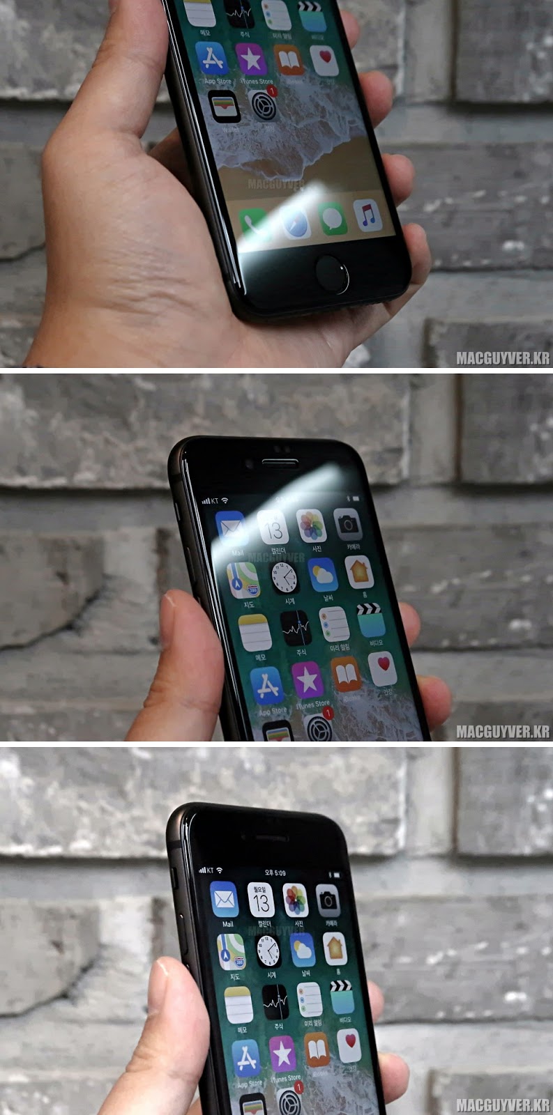 ✎ 굳이 설명하지 않으면 생폰이라고 생각될 정도로 일체감이 높았던 아이폰8 강화유리