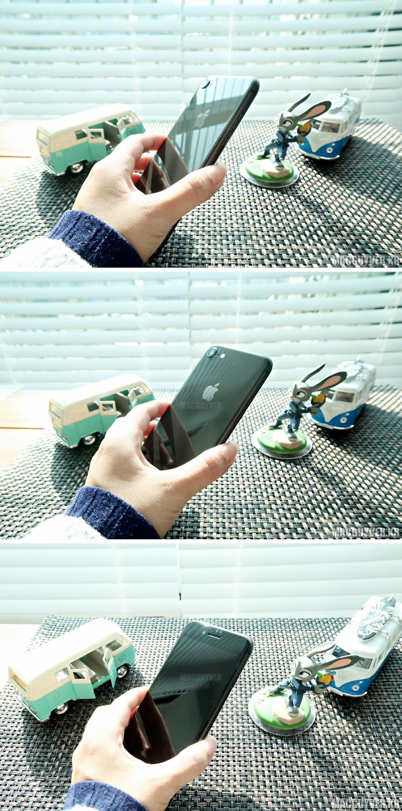 ✎ 오묘한 느낌을 전달해준 스페이스 그레이 컬러의 아이폰8은 빛에 따라 다른 느낌을 전해줬다.