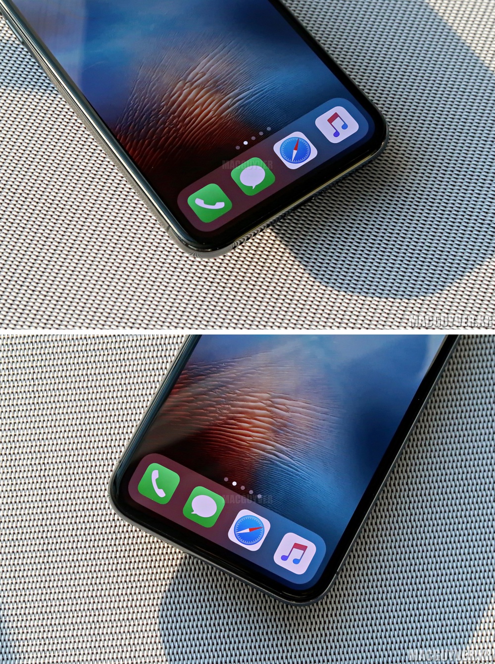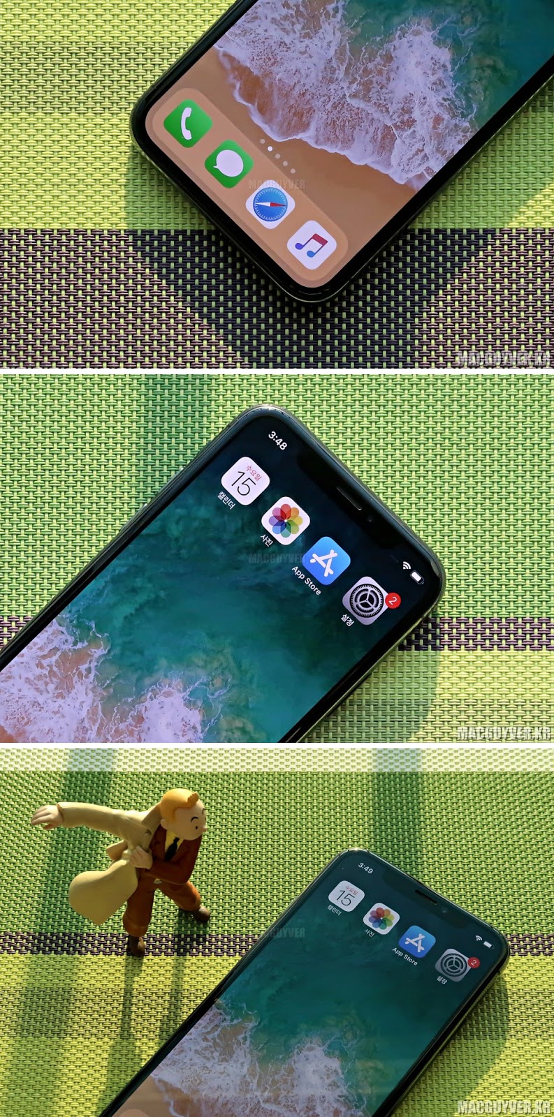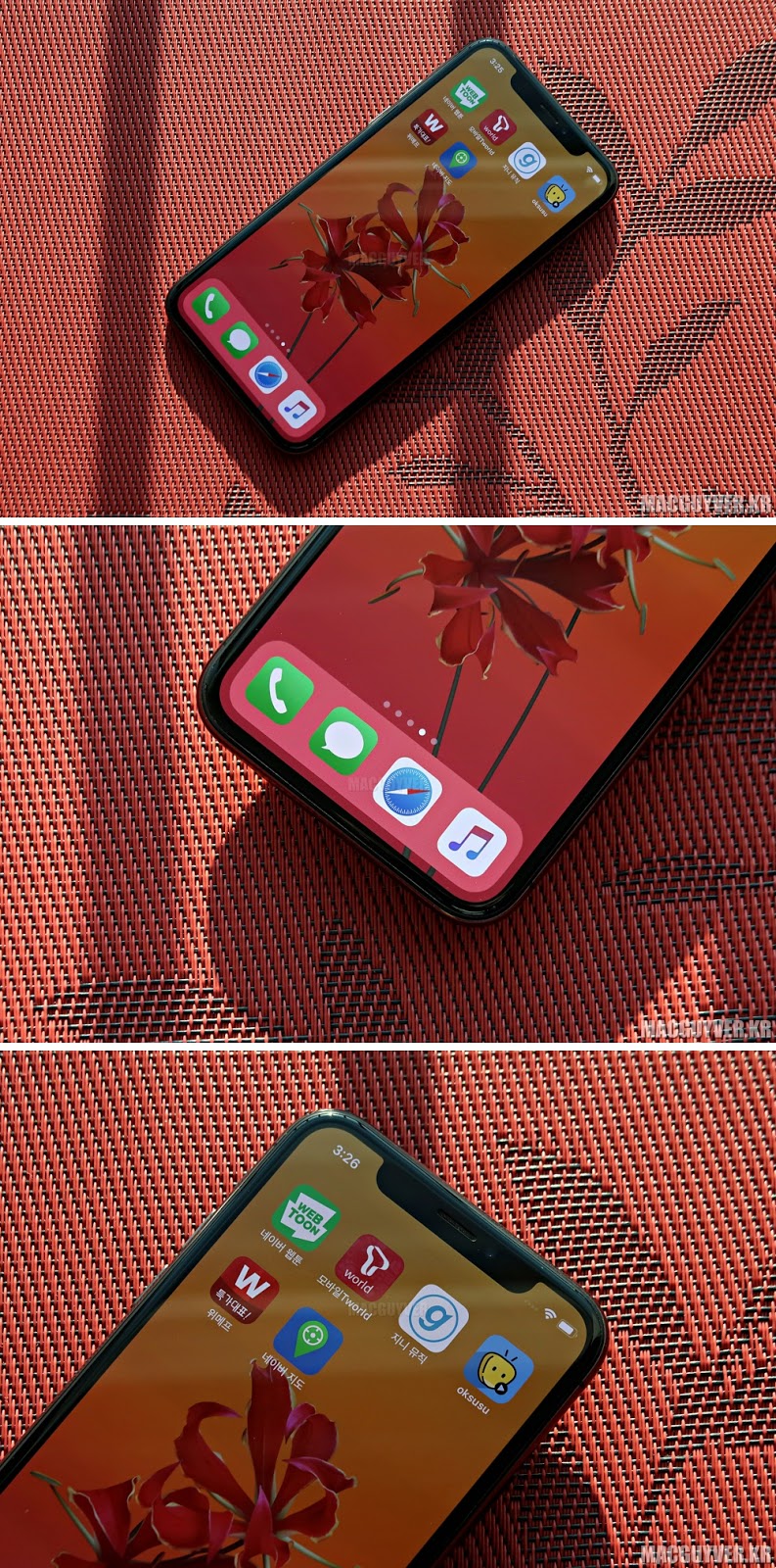 이미 개봉기를 통해 소개한 것처럼 실수로 던진 아이폰X은 스테인리스 스틸 부분에 찍힘이 발생될 수밖에 없었고, 글라스 재질은 일상적인 환경 속에서도 자잘한 흠집이 더 쉽게 날 수 있다는 점에서 보호필름은 필수라는 생각도 들었다.