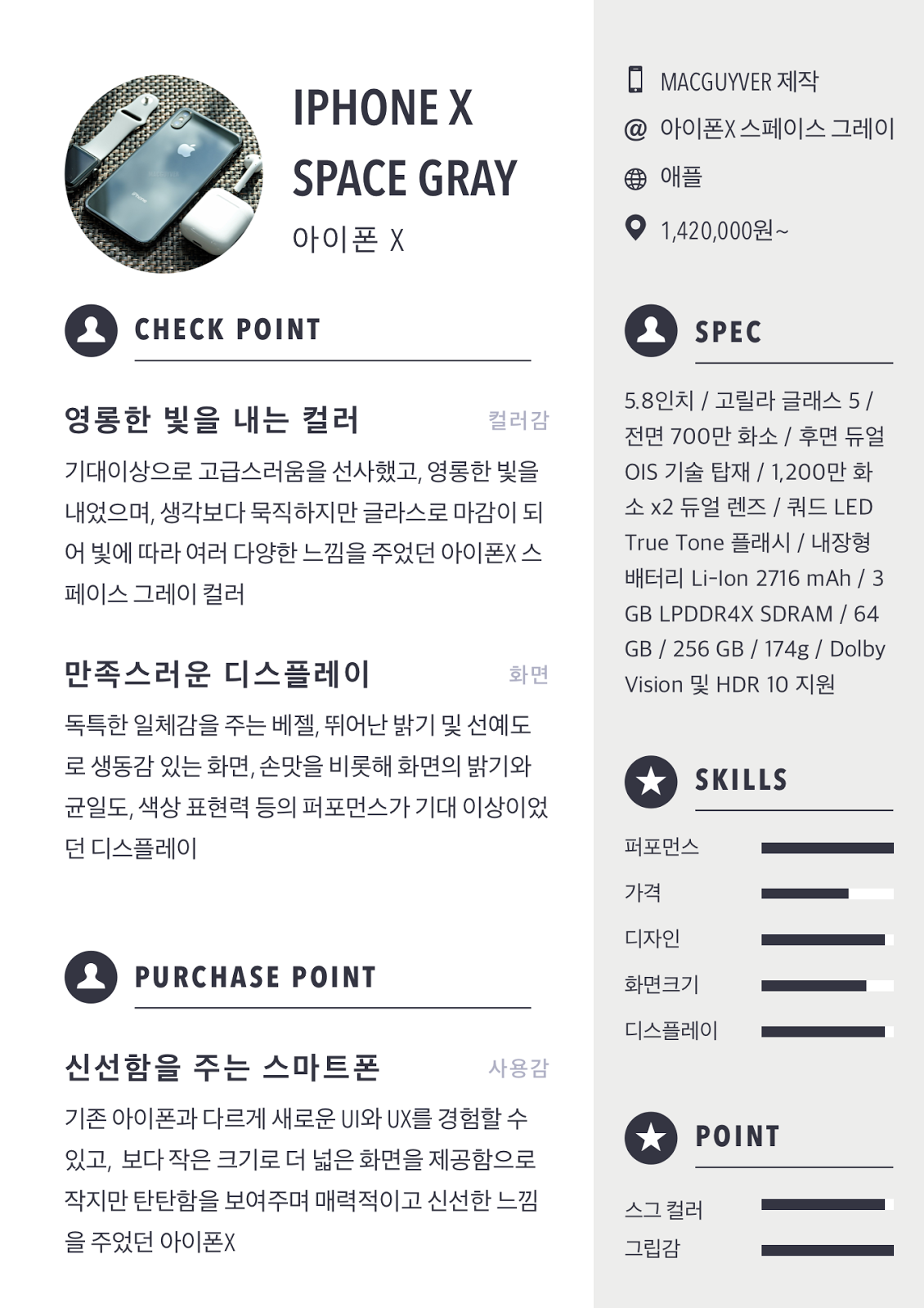 아이폰X은 디자인적인 차이가 크지 않은 것 같으면서도 역대 아이폰 가운데 가장 큰 변화를 선보였고, 그러면서도 동시에 애플다운, 아이폰 다운 모습은 그대로 갖추고 있는 묘한 디자인적 아이덴티티를 품고 있다.