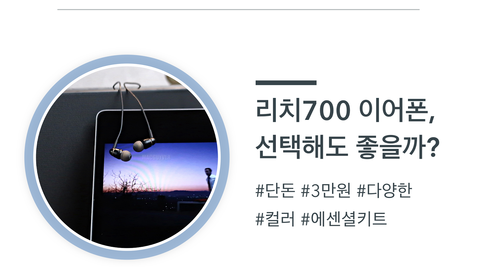 그러나, 가성비만으로 구입하라고 추천하는 것은 테이프나 CD가 저렴하니까 구입하라는 말과 같을지 모른다. 그래서 오늘은 티이오스 리치700 이어폰의 진짜 맛은 무엇인지, 사운드는 어떠하고 사용하기에 아쉬운 점은 없었는지를 살펴보기로 했다.