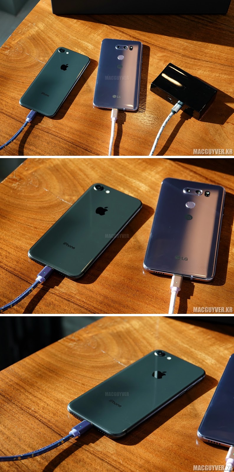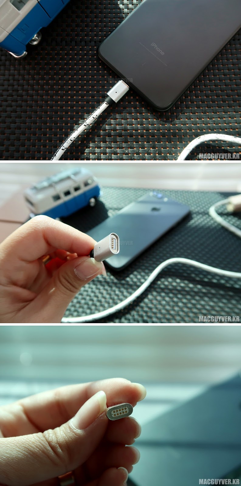 ✎ 프랜베리 마그네틱 자석 케이블은 아이폰, 안드로이드폰 및 각각의 기기에 맞는 젠더만 꽂아주면 하나의 케이블로 다양한 기기를 바로 충전하는 것이 가능했다.