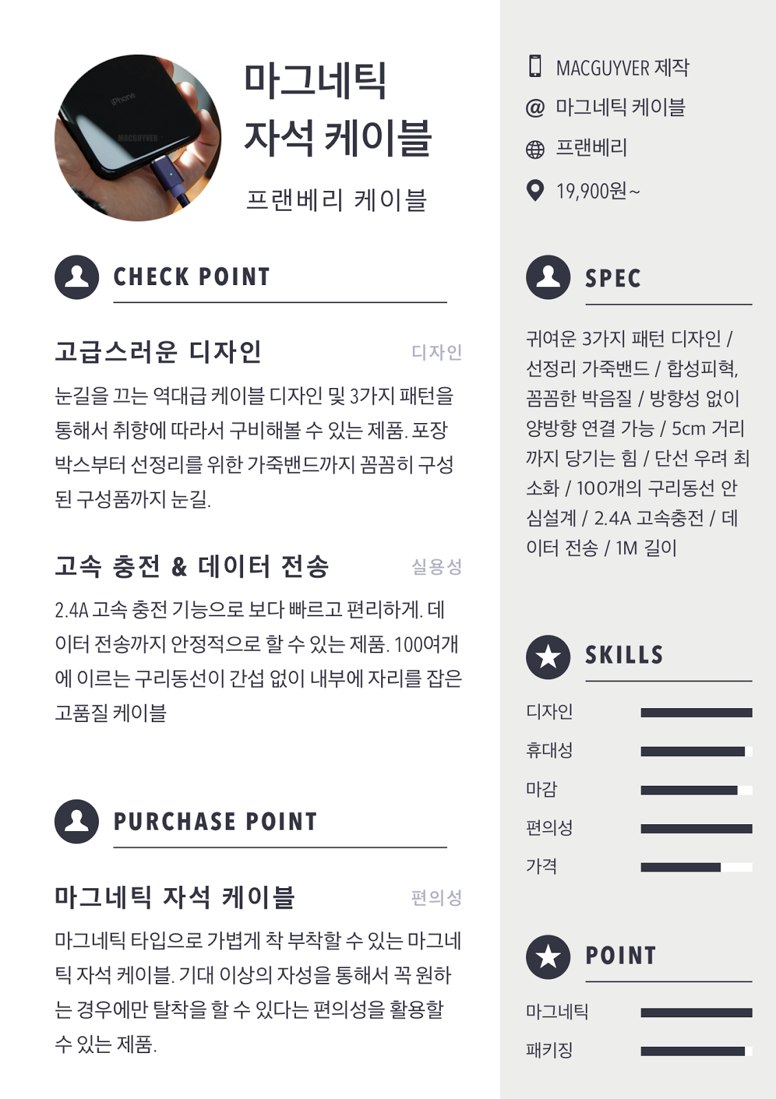 플래그십 스마트폰이 점점 비싼 가격을 책정하면서 이제는 130~160만원에 다다르고 있기 때문에, 기준을 높일 필요가 있기 때문이다. 그 점에서 놀라운 내구성과 귀여운 디자인, 거기다 실용적인 사용성까지 겸비한 프랜베리 마그네틱 자석 케이블을 더한다면 더욱 만족스러운 사용이 가능할 것 같기도 했다. - MACGUYVER.