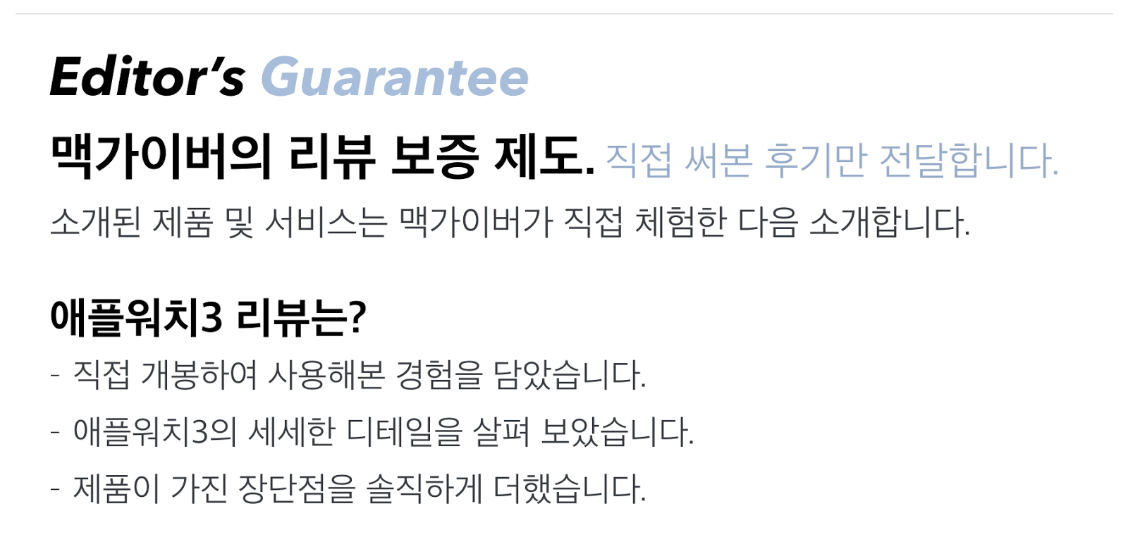 그래서 직접 사용해본 애플워치 시리즈 3 (애플워치3)는 분명 새로움도 있었고 익숙함도 있었다. 기존 애플워치 사용자들이라면 워치OS4를 통해서 조금 더 새로운 기능들을 사용해봐도 좋고, 또 새로운 애플워치 시리즈 3 (애플워치3)를 통해서 다른 맛을 경험해봐도 좋을 것 같다. - MACGUYVER.